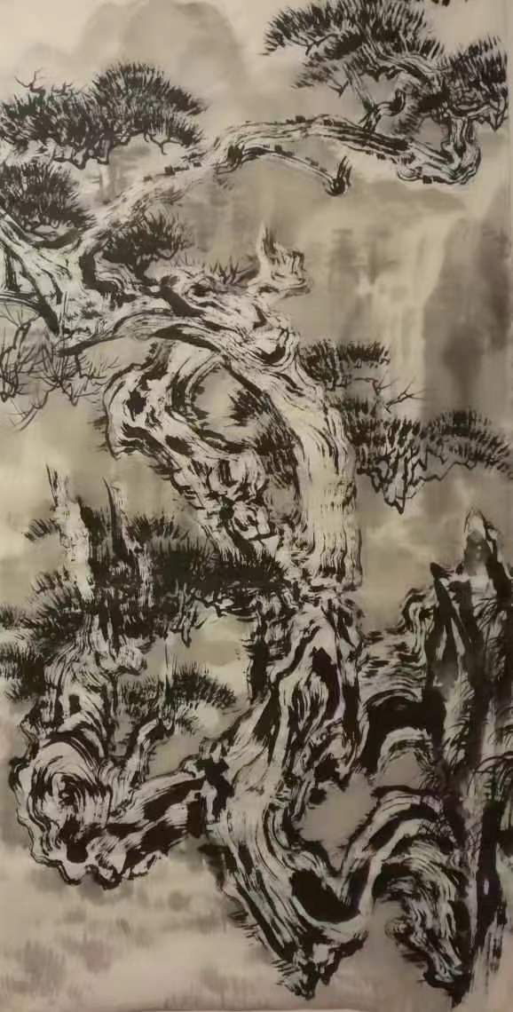 我的水墨画作品,是我的人文思想的表述。画面注重抒情和诗意的造境,通篇注重气势,用笔学习中国线描画和写意画的铿锵有力,构图将传统国画中的三远和西画的焦点透视相结合,注重吸收包豪斯名家的点线面的元素美感构成和点彩派及表现主义的活跃鲜亮色彩魅力,色彩注重吸收西方油画水彩画名家的丰富和变化。虚实留白则吸收了中国绘画的艺术神韵。在艺术境界上追求文化品味和自由生动的表现形式和手法。既继承传统文化又注重吸收西方文化的精华,形成了自己的泼彩写意文体。
