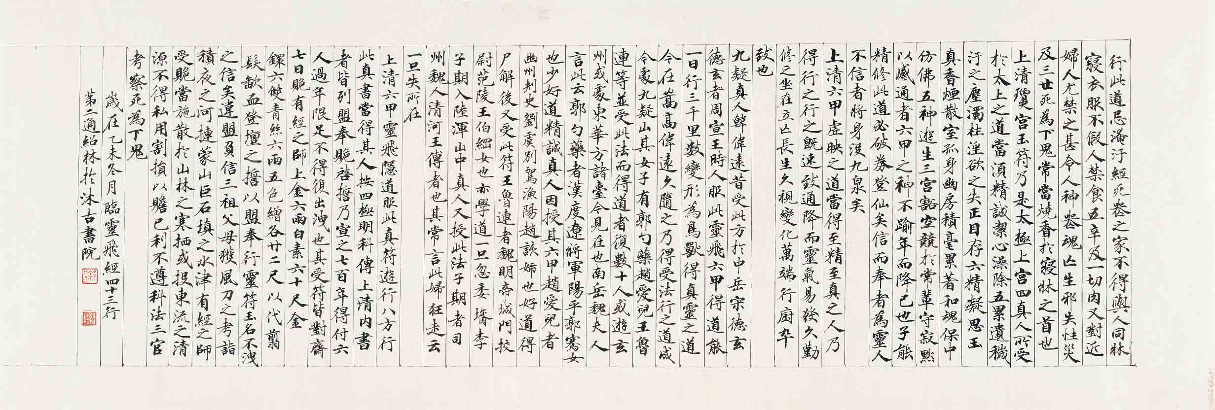 基于此,他于2015年3月在杭州创办沐古书院,专注于书法专业研究及高等书法教学实践。主张“书法有生活、规律循自然”的教学思想和理念,重点研究传统笔法与五体自然书写的关系,正所谓“笔法通、五体皆通”。通过对历代经典碑帖作品的用笔、用墨、用纸考证和实践,深入研究和解剖,还原古法用笔和古人的书写动作,强化对笔法的分解和运用,总结出一套通俗易懂、便于掌握的学习方法。
