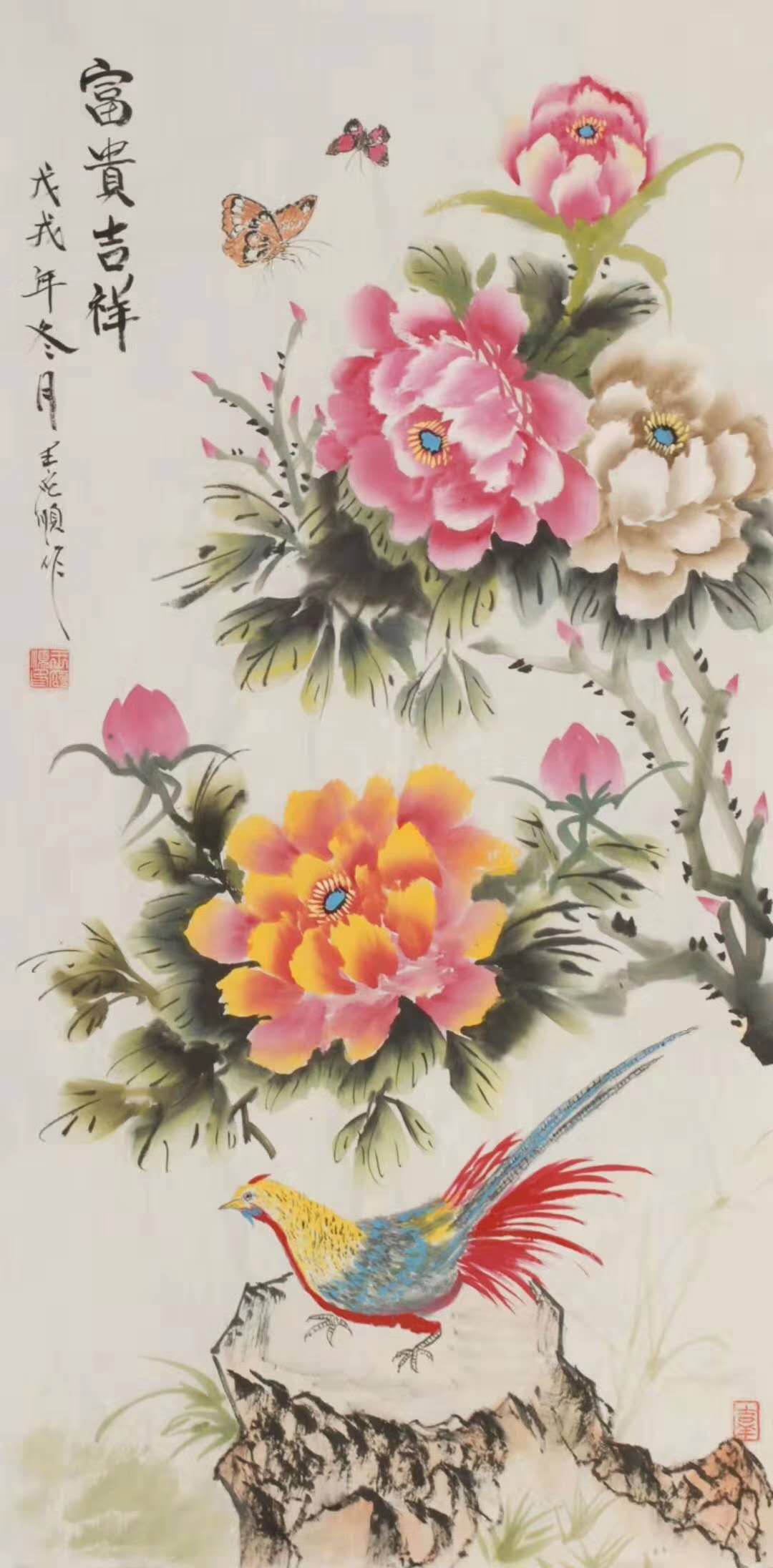 王应顺先生自幼酷爱书画艺术,尤其擅长创作牡丹作品,他笔下牡丹栩栩如生,婀娜多姿,深受国内外书画藏友喜欢。在2006年《泰山杯》全国书画大赛荣获银奖。2017年中国第十一届国画书法大赛荣获优秀奖。现为中国新青年书画院理事,山东省名人书画院常务理事,中华爱心书画研究院副院长,济南东城书画院副院长,上海中华书画协会会员。