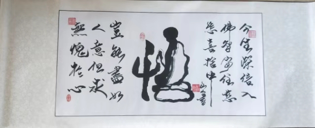 杨玉才先生悟书画禅趣,佛法书画融为一体,参玄佛学,感悟人生,其用笔灵活多变,酣畅淋漓,字里行间透彻禅机,静态与动态美,形成自己独特的艺术风格。 杨先生的可贵之处在于对艺术孜孜不倦的追求,虽从事机关工作,但工作之余,他超凡脱俗,远离酒肉应酬,利用休闲时间,参玄佛学悟人生真谛,运用书画创作尽显其中,以书画弘扬佛法,以佛心转换尘心,在慢慢长河中让人感觉禅机与墨香。