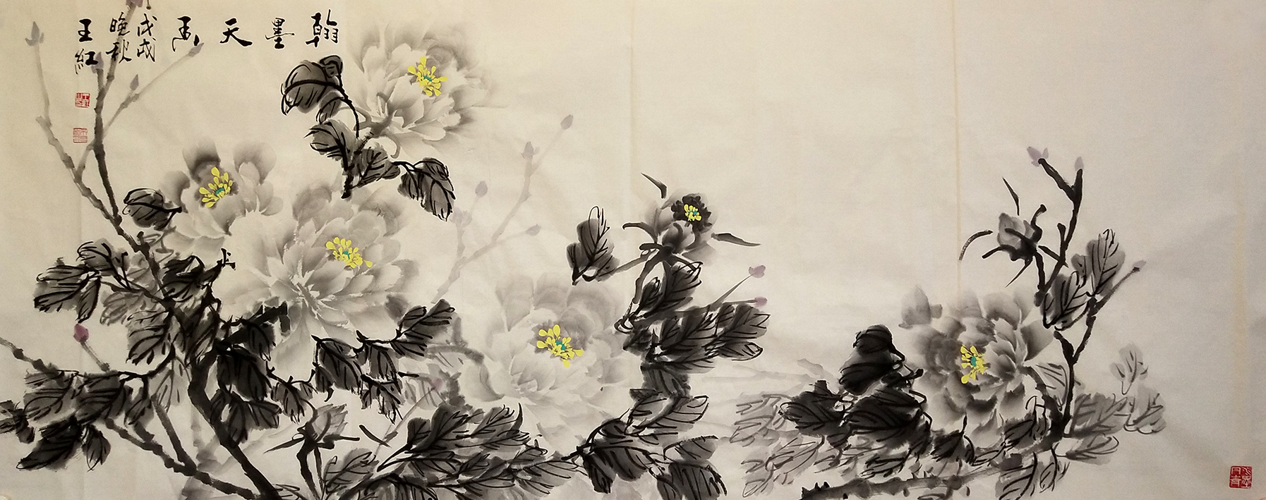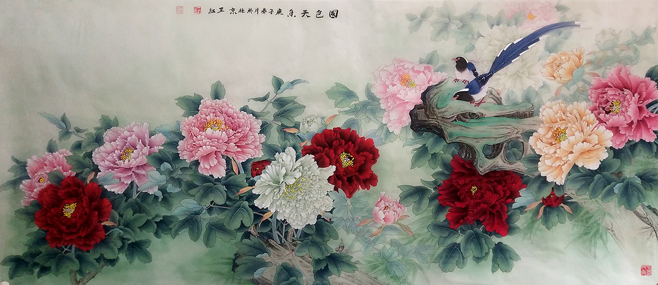 2017年7月王红国画《国色天香》参加庆祝香港回归20周年全国书画艺术名家展,荣获金奖;