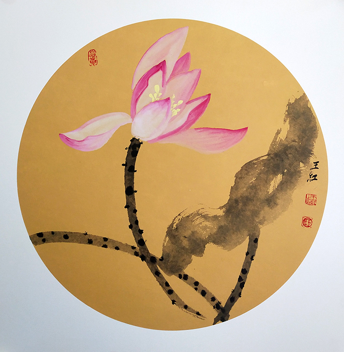 2013年6月王红国画《荷塘清趣》参加纪念改革开放35周年国学文化最高成就金奖;