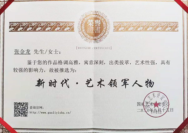 2020年9月被国礼艺术评定中心推选为“新时代艺术领军人物”。