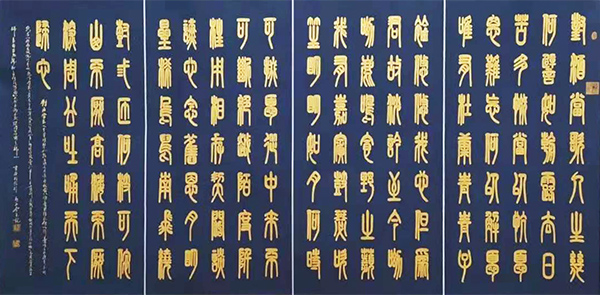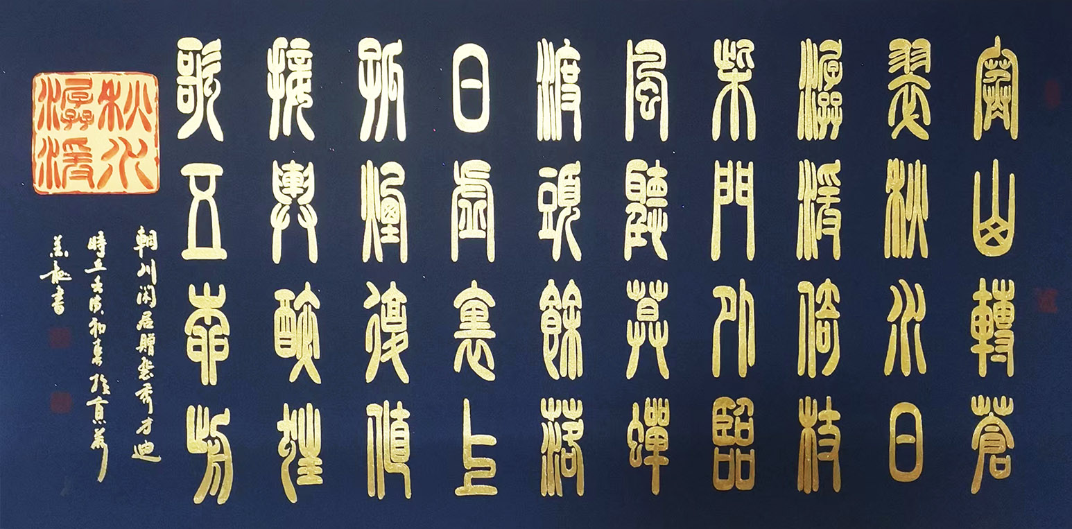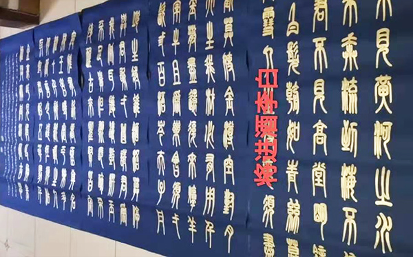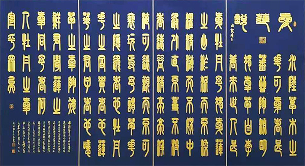 曹操 短歌行(瓷青金粉小篆)曾获全国书法大奖赛一等奖。