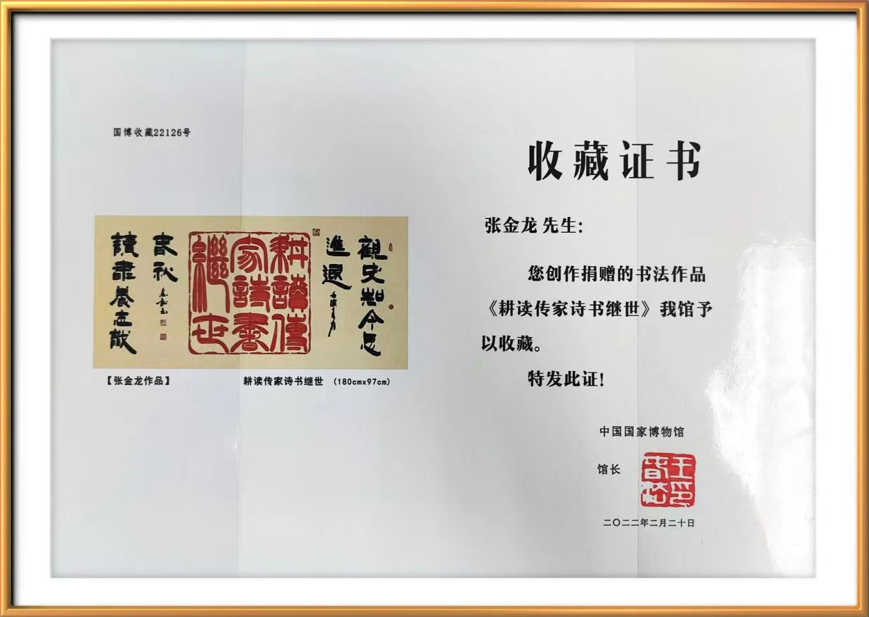 书法作品《耕读传家诗书继世》被中国国家博物馆收藏。