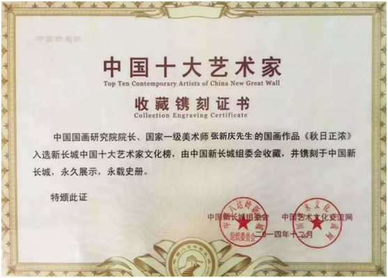 ▲张新庆作品《秋日正浓》入选新长城中国十大艺术家文化榜