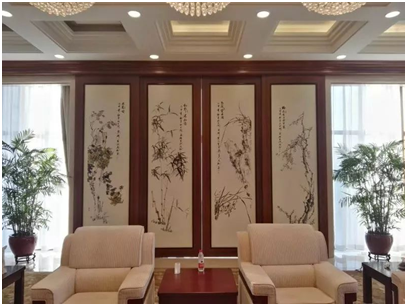 ▲张新庆作品《梅兰竹菊》陈列于国家安全部