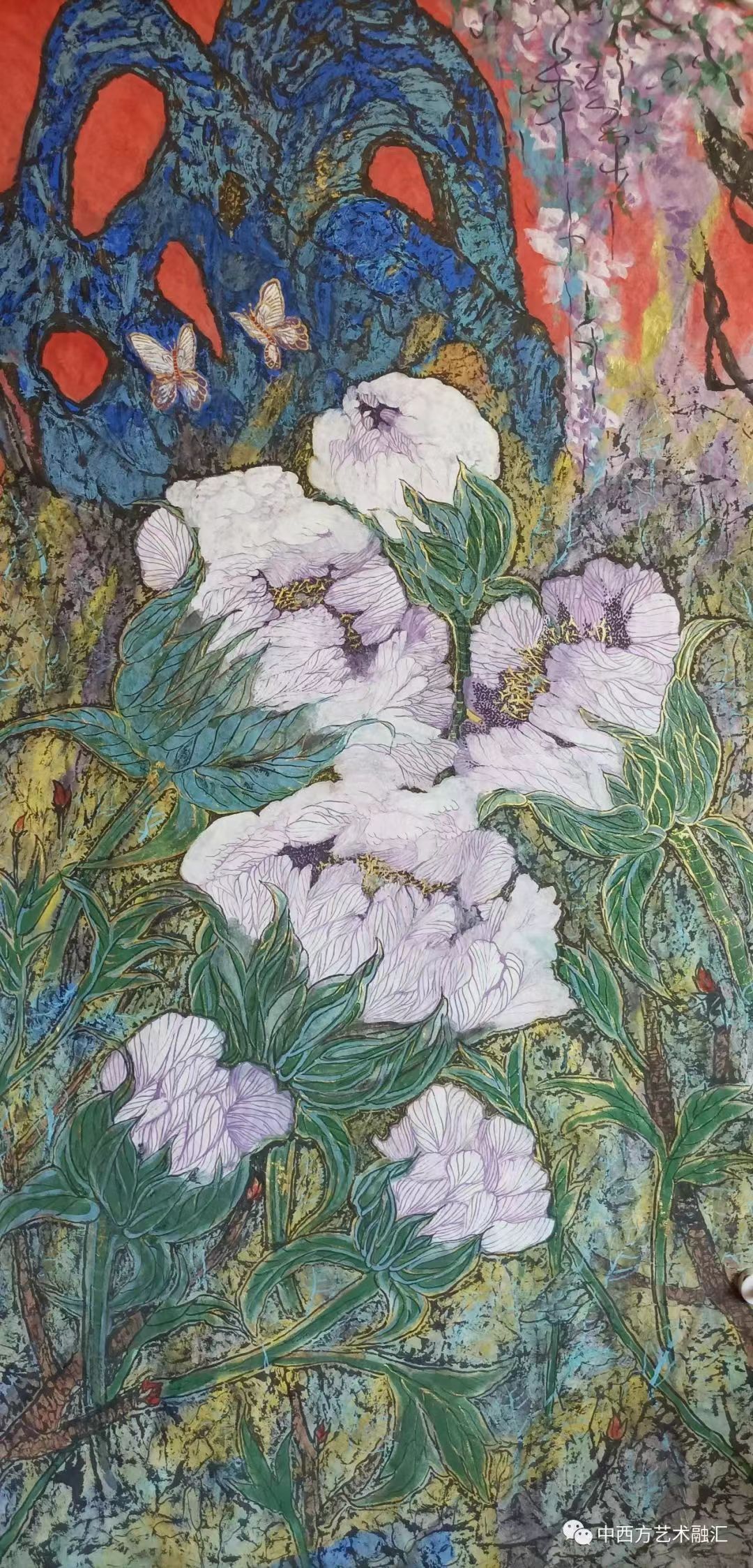 《御花园的春.太湖石 魏紫 赵粉》125cm125cm生宣岩彩画2022年创作于北京
