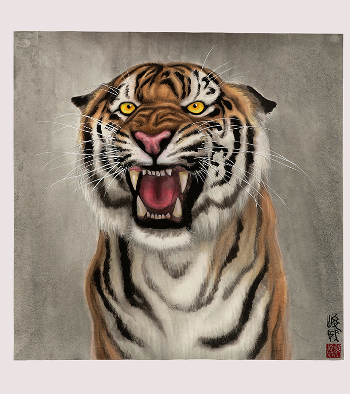 自幼画画天赋异禀,喜画动物,偏爱画虎.
