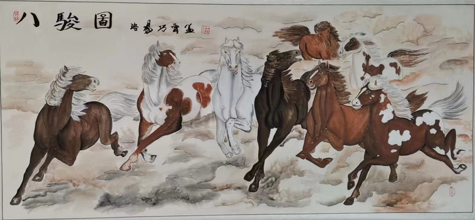 2006年11月在国展艺术节拍卖会上,次作品《八骏图》以68万的价格拍出,被新加坡客商收藏