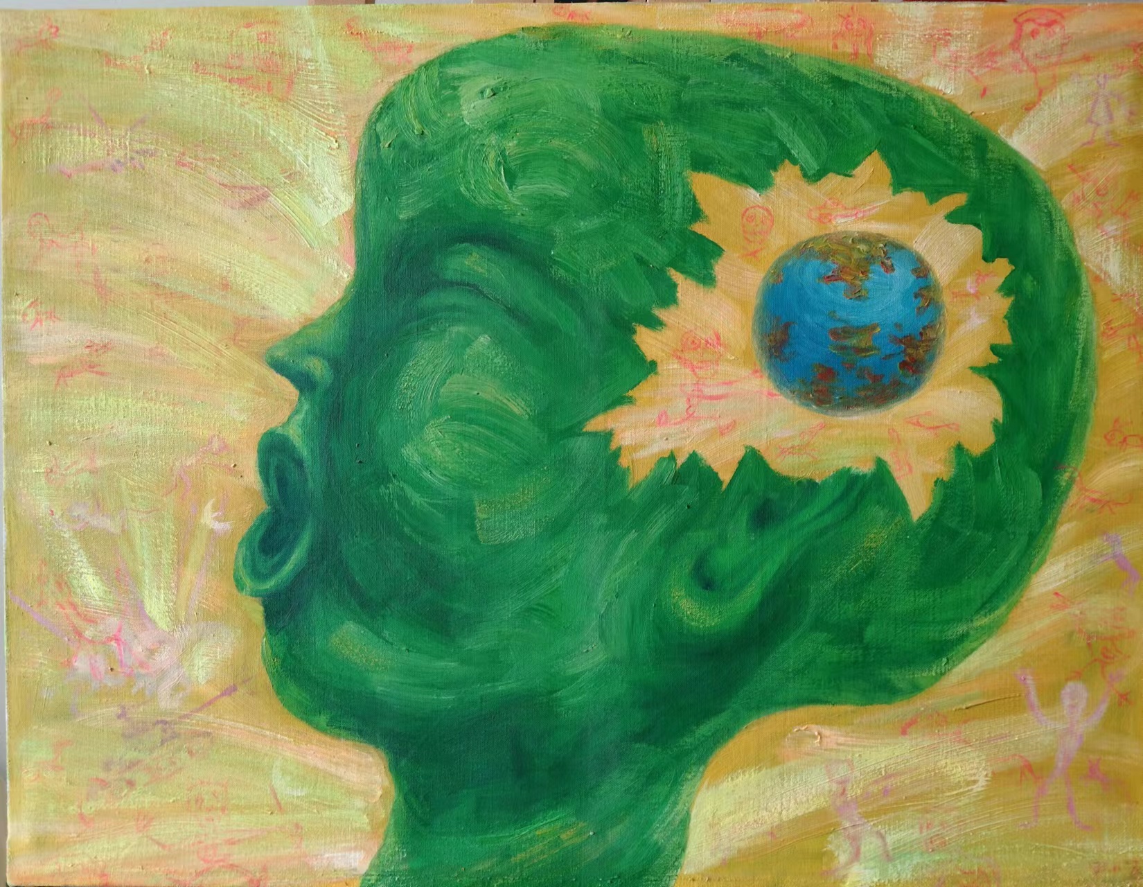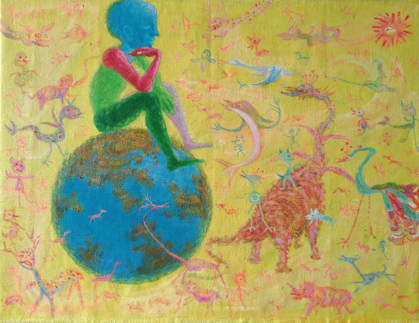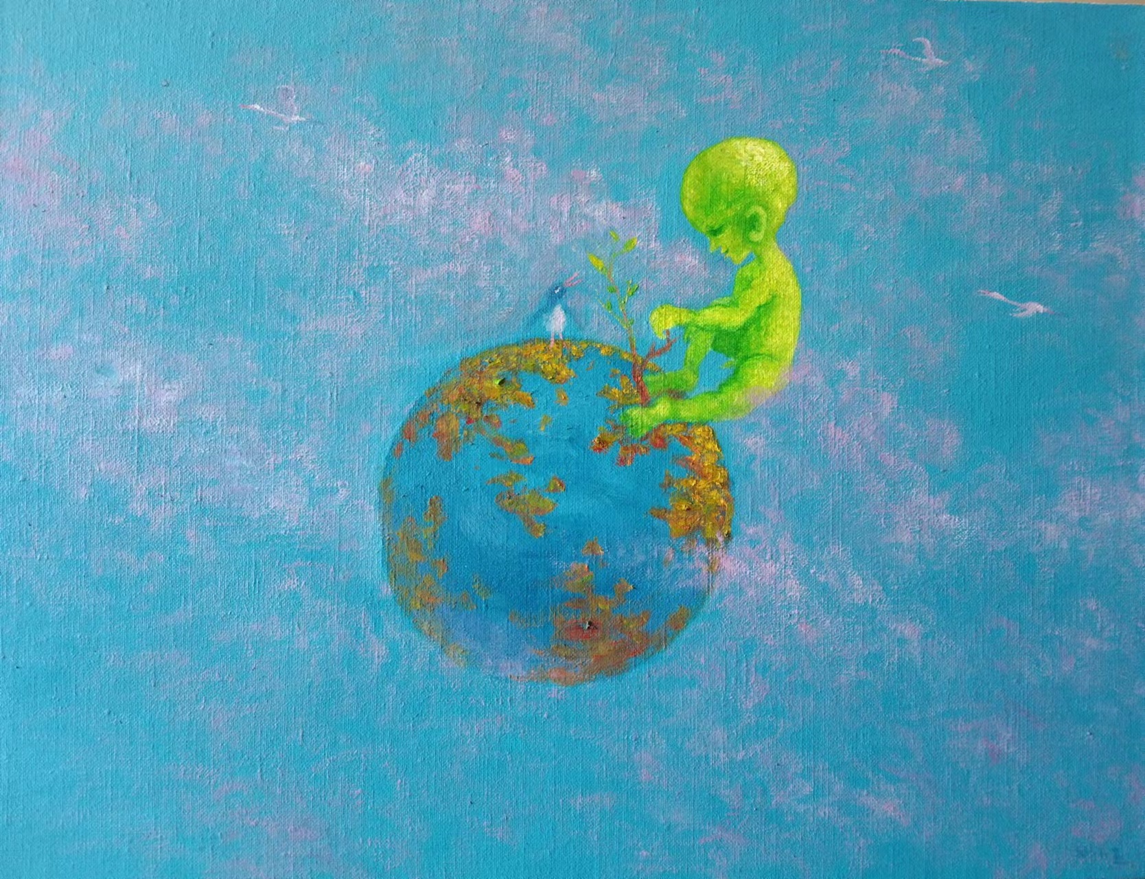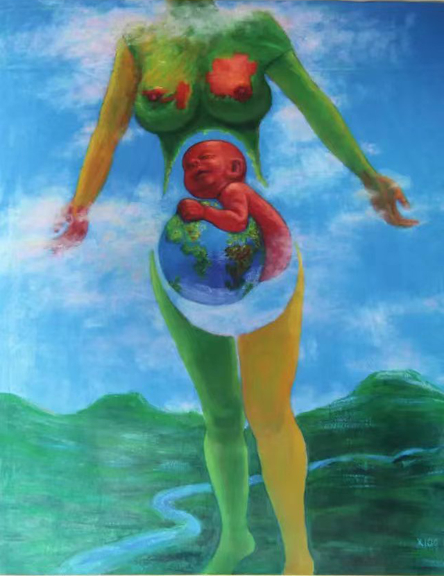 我们人类自工业革命以来,到今天似乎比任何时候更为安详富足,但人类在与生俱来的贪欲巨大驱动下,已犯下了前所未有的错误,随着工业化进程越来越快,气温不断升高,南极冰山每年以570亿吨的速度熔化,全球人口不断增加,森林越来越少,空气指数下降频率变快,全球物种减少数字惊人,而我们人类头顶上臭氧层空洞越来越大,人类因意识形态的不同而战争频发,并大量生产足以毁灭整个地球的核生化武器。虽然我们人类有所意识到人类的生存现状,但团结起来治理的速度远远跟不上,贫富差距的快速拉大,及生物与信息技术的迅猛发展,恐将人类推向一个可怕的灾难深渊,而极端消费和资本控制欲望、也必将成为加速历史终结的根源,没有人能证明或阻止,文明终究毁灭文明者之手,但这些能否不成为不可克服的宿命。虽然我只是一个地位卑微力量是那么的微小的一个平凡的地球村之普通公民,但选择用绘画抽象表达出一种不祥预感,来完成大地母体给了我一次生命的形成与消失的机会之回报。最后,让我们重温一下爱因斯坦的哲言,虽然人类的智慧足以走向外层空间,但能让人类正常生存之地还未找到--------爱因斯坦