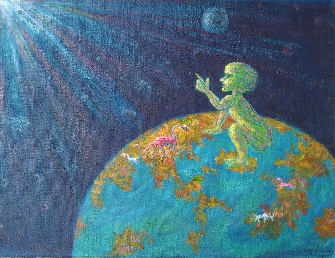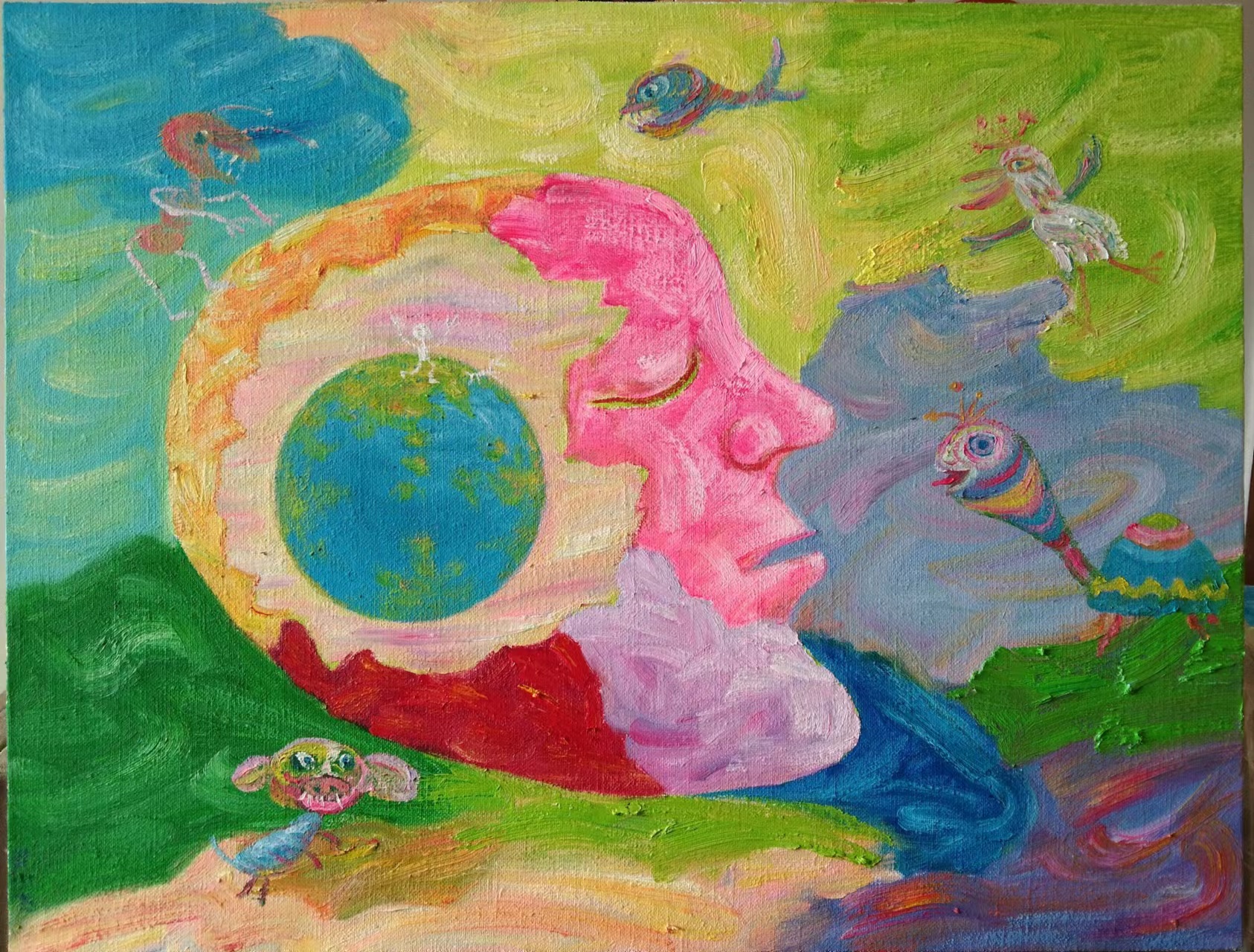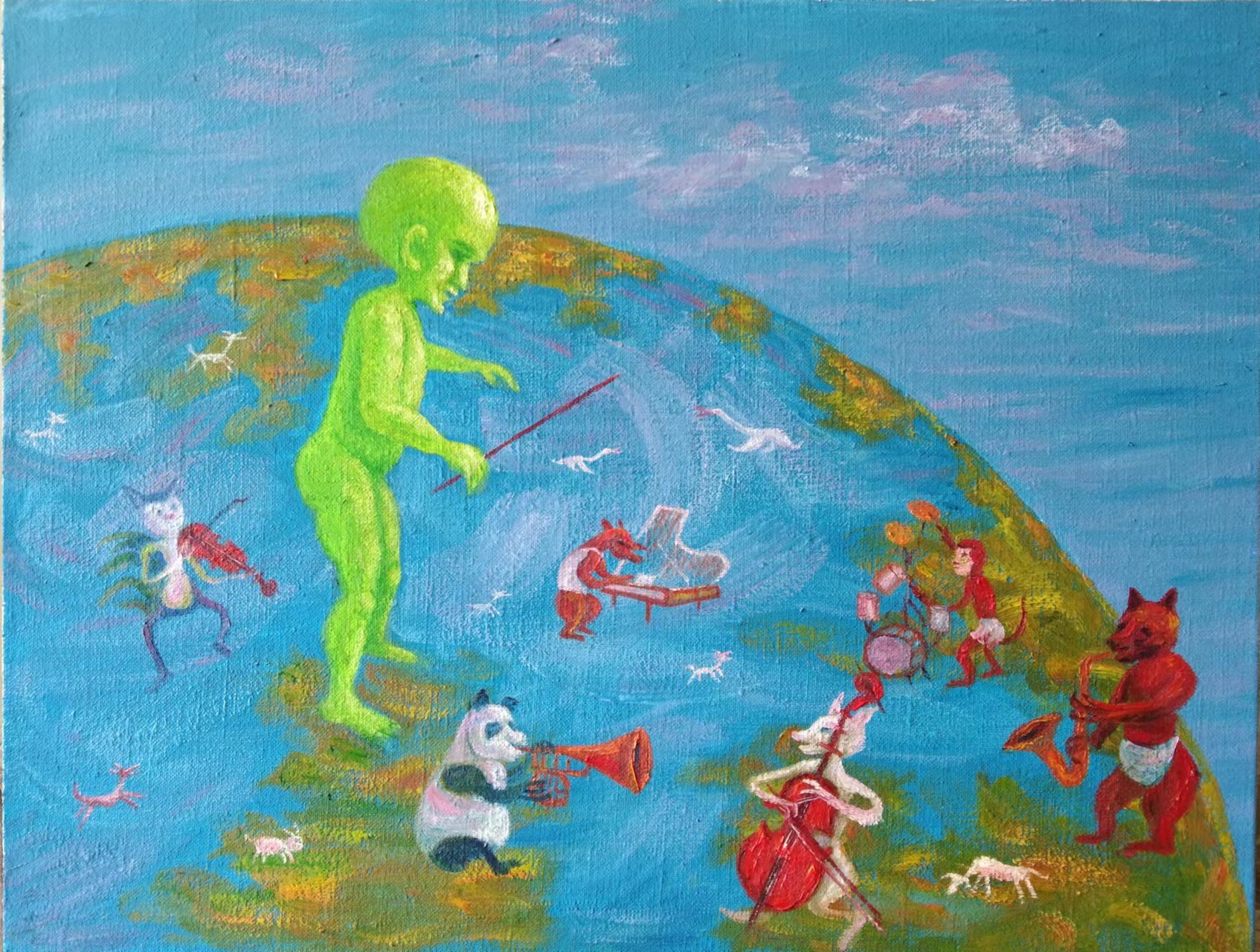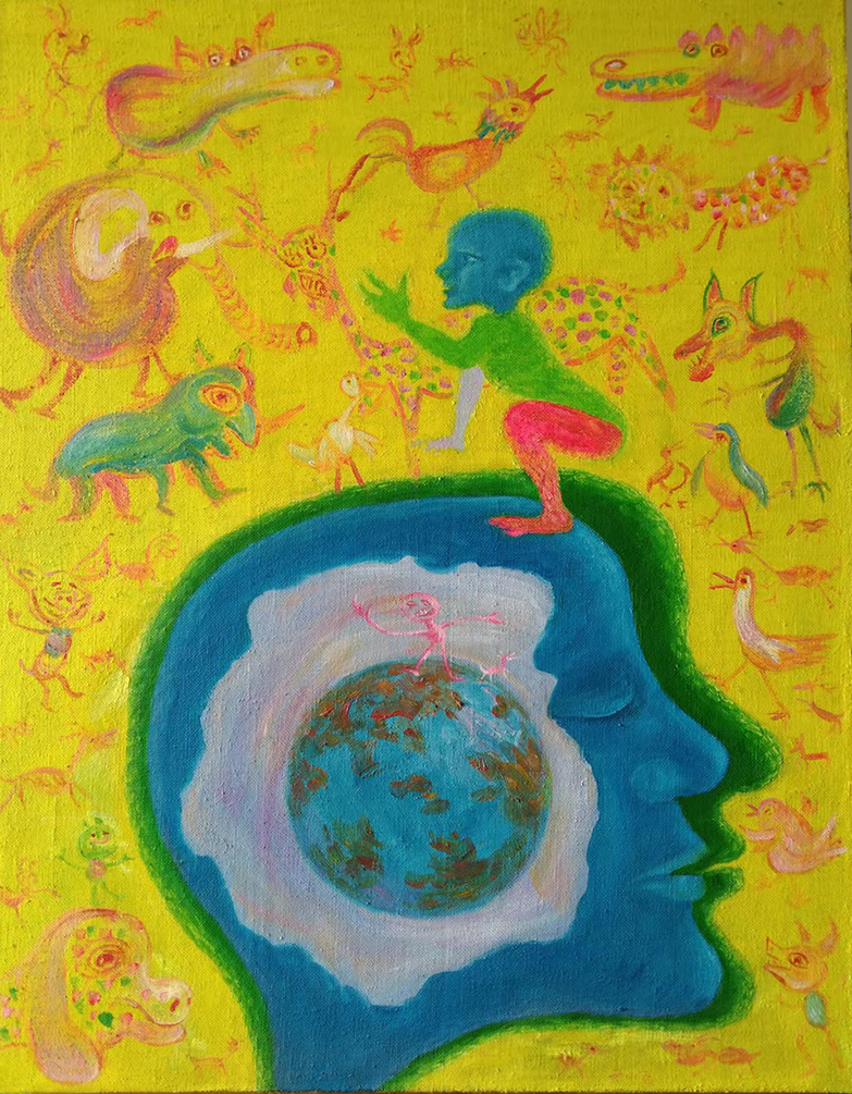 我们人类自工业革命以来,到今天似乎比任何时候更为安详富足,但人类在与生俱来的贪欲巨大驱动下,已犯下了前所未有的错误,随着工业化进程越来越快,气温不断升高,南极冰山每年以570亿吨的速度熔化,全球人口不断增加,森林越来越少,空气指数下降频率变快,全球物种减少数字惊人,而我们人类头顶上臭氧层空洞越来越大,人类因意识形态的不同而战争频发,并大量生产足以毁灭整个地球的核生化武器。虽然我们人类有所意识到人类的生存现状,但团结起来治理的速度远远跟不上,贫富差距的快速拉大,及生物与信息技术的迅猛发展,恐将人类推向一个可怕的灾难深渊,而极端消费和资本控制欲望、也必将成为加速历史终结的根源,没有人能证明或阻止,文明终究毁灭文明者之手,但这些能否不成为不可克服的宿命。虽然我只是一个地位卑微力量是那么的微小的一个平凡的地球村之普通公民,但选择用绘画抽象表达出一种不祥预感,来完成大地母体给了我一次生命的形成与消失的机会之回报。最后,让我们重温一下爱因斯坦的哲言,虽然人类的智慧足以走向外层空间,但能让人类正常生存之地还未找到--------爱因斯坦