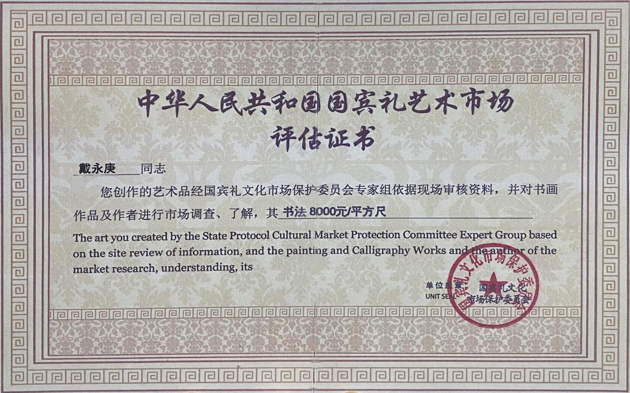 中华人民共和国国宾礼润格证书