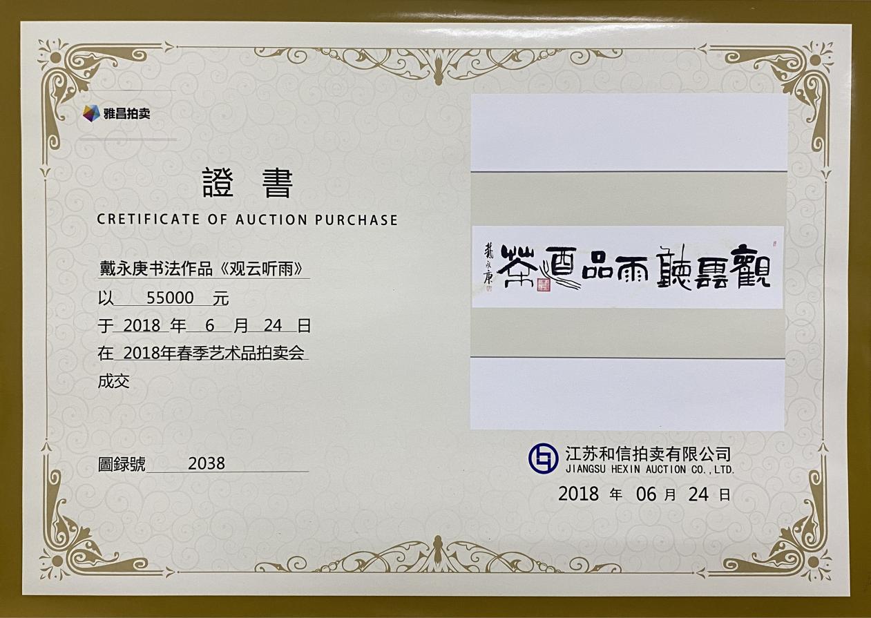 作品《观云听雨》2018年拍卖价格55000元