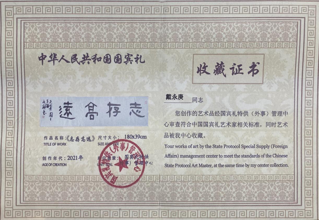 2012年作品被中南海陈列收藏;