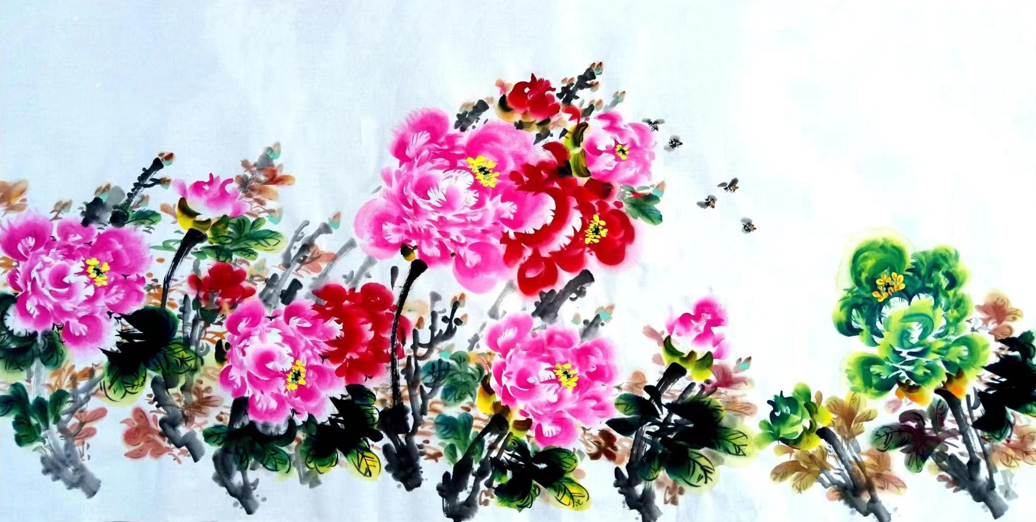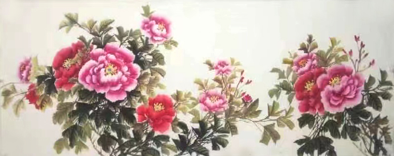 2017年 春节前夕慰问国旗护卫队,赠送作品两幅。作品 《盛世中华》牡丹图被悬挂在天安门城楼