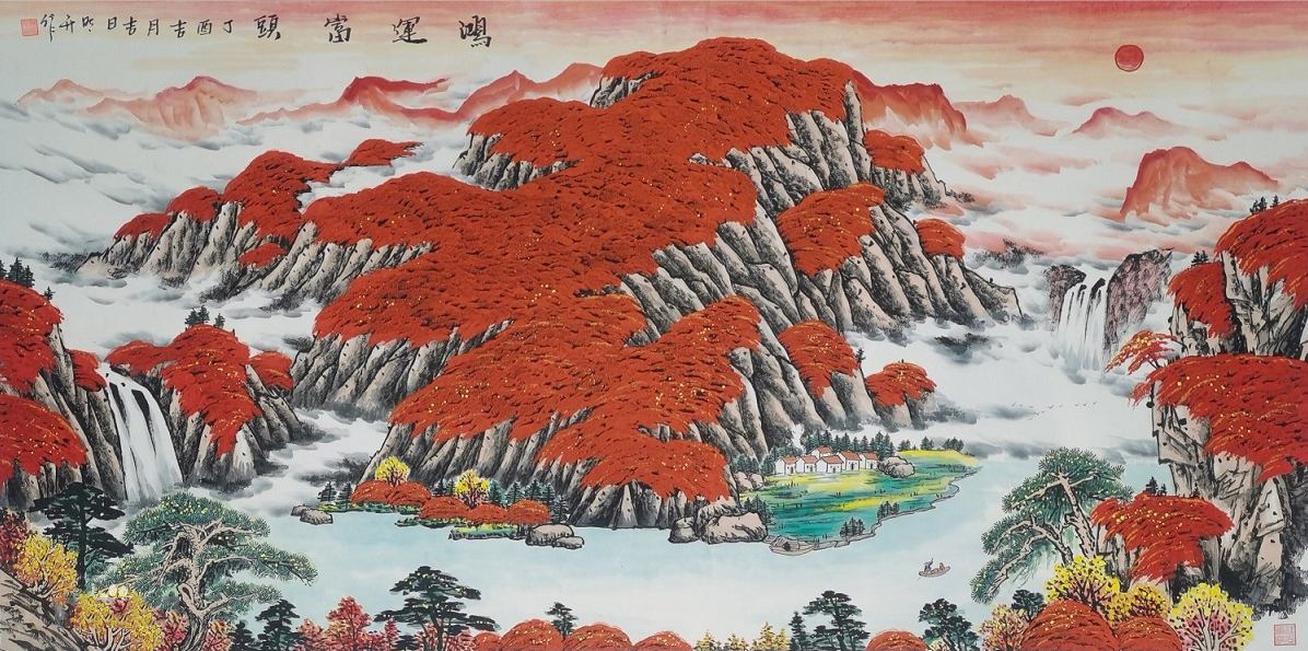 2013年 作品入选中央电视台与《百家收藏》联合主办的艺术巡展,在北京地铁、高铁候车室屏幕连续两年滚动播出,共展播牡丹、山水、30余幅。