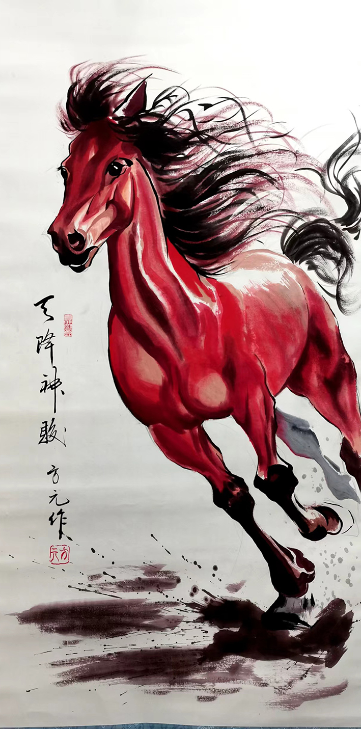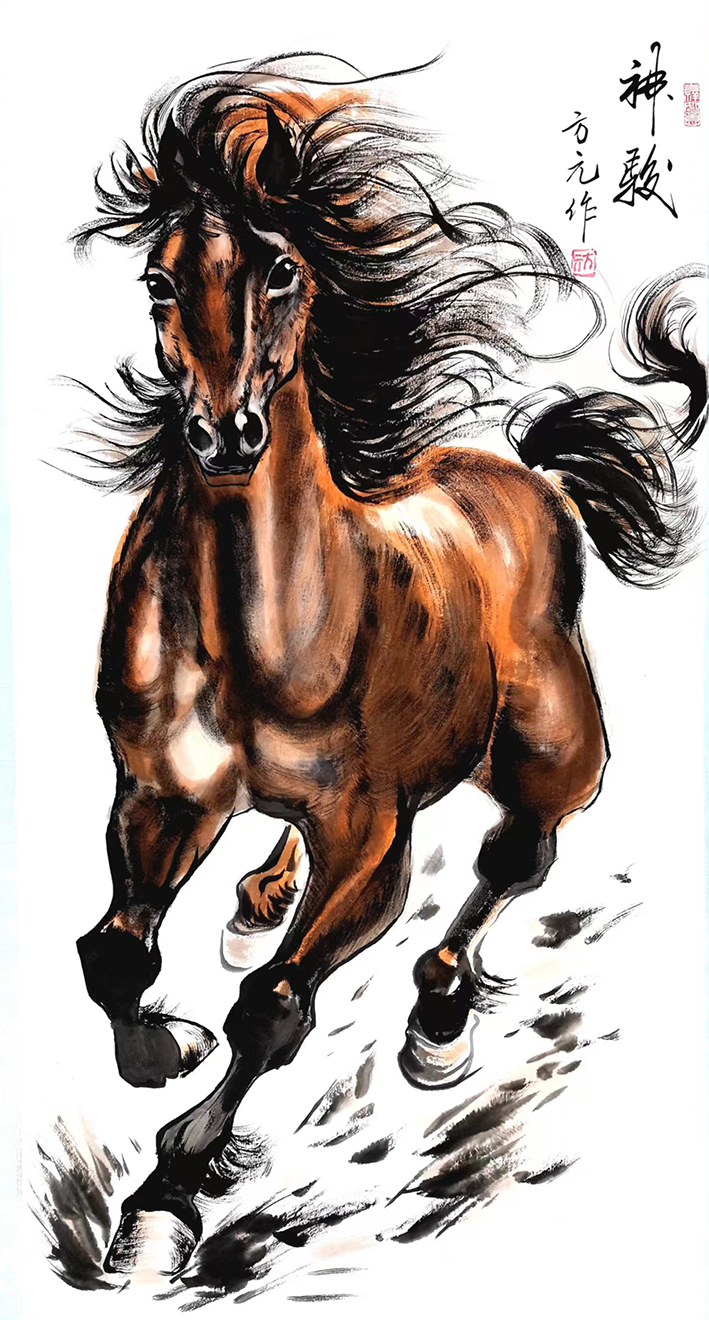 方元,号;龙飞,北京墨石斋书画院副院长,徐悲鸿第四代传承人 ,焦墨画马技法创始人方秀亮入门弟子,兰州新区美协理事,国家一级美术师,中国书画协会理事, 先后结业于哈师大美术系、鲁艺美院、中央美术学院,研究生学历,擅长国画、油画 ,国画《天降神骏》,荣获2018年度庐山杯新生代超写实国画创新奖,油画作品《天行健》,荣获中艺财富网上榜品牌,陆续入围文化机构、博物馆等高级别艺术作品参展,自2018年1月1日被中国礼司部指定为国礼艺术家,作品作为国礼馈赠给多个邻帮友好国家。