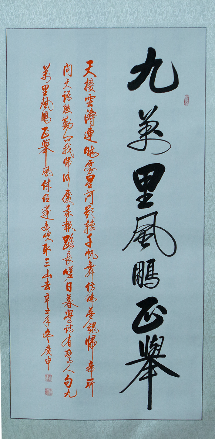 《沁园春-雪》《诫子书》、《天行健》、《陋室铭》、《临江仙》、《将进酒》、《爱莲说》、《兰亭序》、《寒窑赋》、《善缘》,《九万里风鹏正举》、