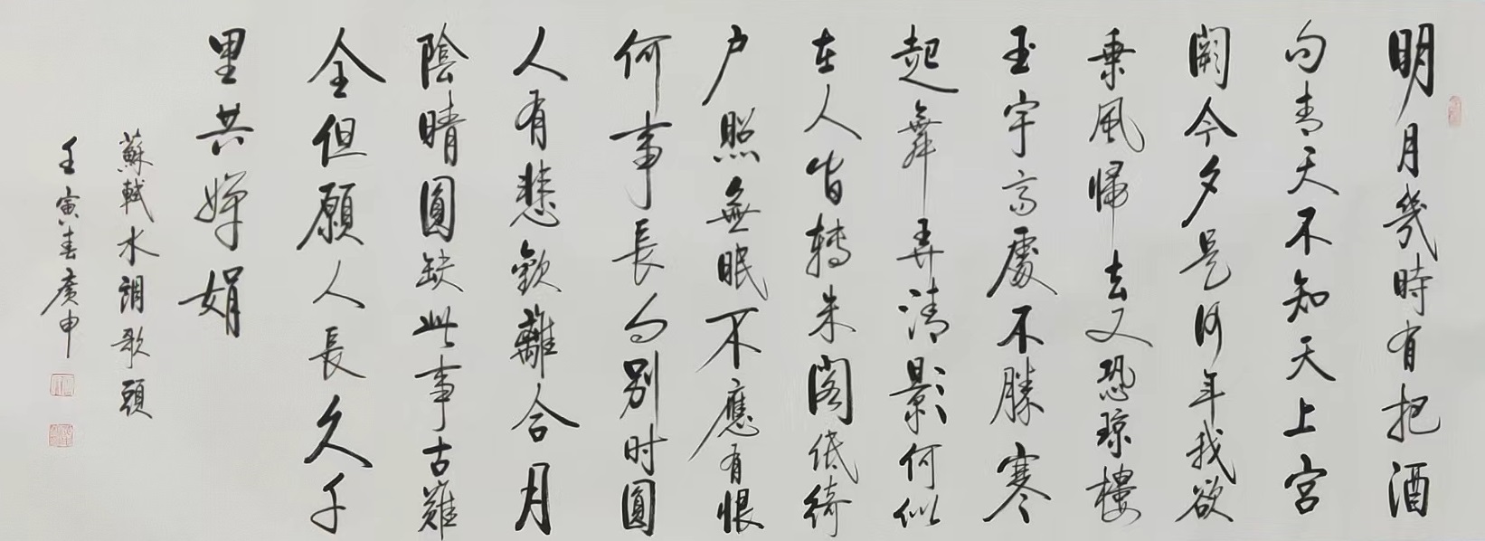 《水调歌头》全国参展,2015在北京保利拍卖会拍出了28万,同年秋季又被拍出了31万。并且受到启功老师的高度赞扬。