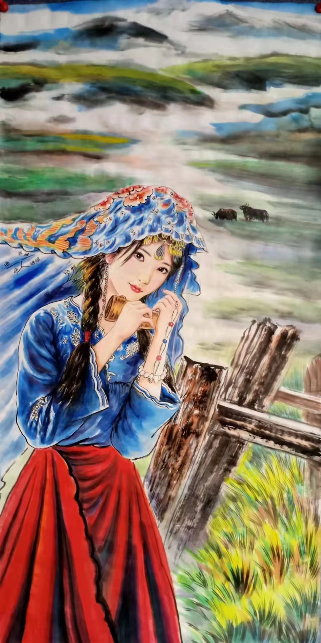 观其花鸟、人物,吴悠画家总能实现既严谨又活泼的均衡把控。特有的现代感里兼具古韵雅致、现场感里又具悠然自得,笔法细腻有诗化粗犷意象,色调柔和中不失神志贞烈表达。