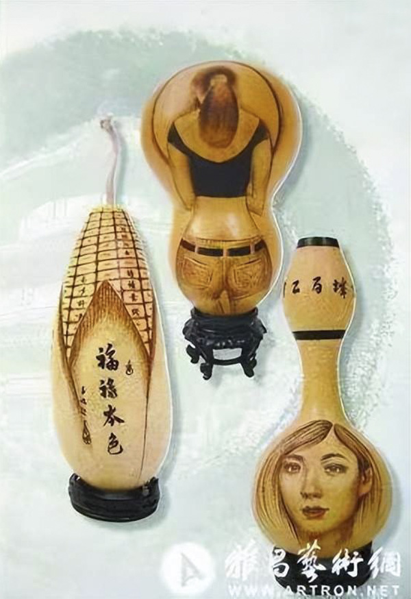 葫芦本色就有古画的基调,在上面临募出名家的国画作品,线条流畅准确、形态栩栩如生、意幸免幽深高远。给人以耳目一新、不媚不俗的感觉。