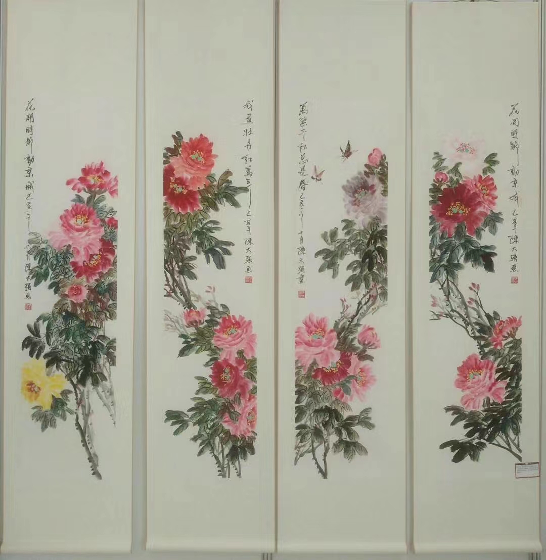 2020年入展由河南广电总局主办“同心抗疫网络书画展”入展由郑州图书馆主办“同心抗疫 共克时坚书画作品展” ,牡丹四条屏被郑州图书馆收藏;