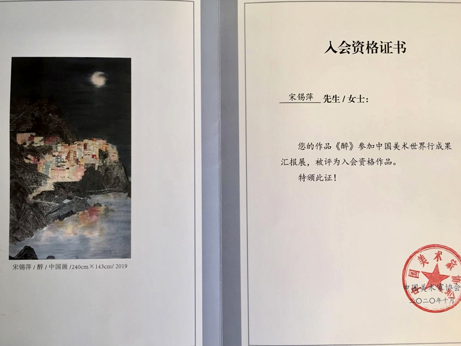 2020年作品国画《醉》(2.4米X1.45米)入选中美协主办的