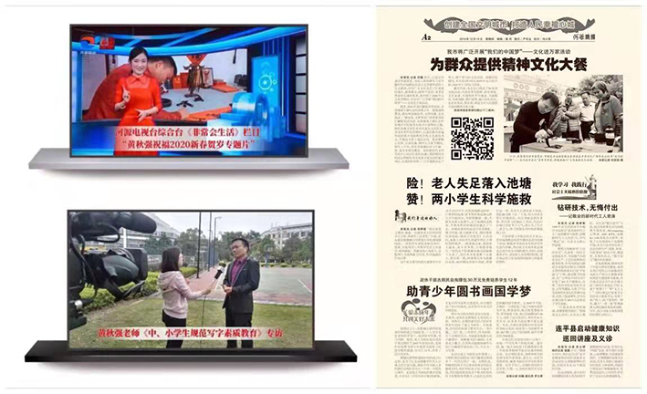 2020年1月份受河源市广播电视台诚邀拍摄《黄秋强祝福2020新春贺岁专题片》由(2020年1月20日~2月3日)新年期间在河源综合台《非常会生活》栏目中数十次滚动播出。作品在新中国人民艺术网展出同时被授予“中国艺术名家”荣誉称号并授国家文化主管部门严格审批后成立了2020年3月份全国首批“中国艺术名家工作室。9月份受华夏艺术和中国书画论坛活动组委会邀请参加「国庆特刊」礼赞新中国,奋进新时代作品展并被评为“中国艺术杰出典范人物”。
