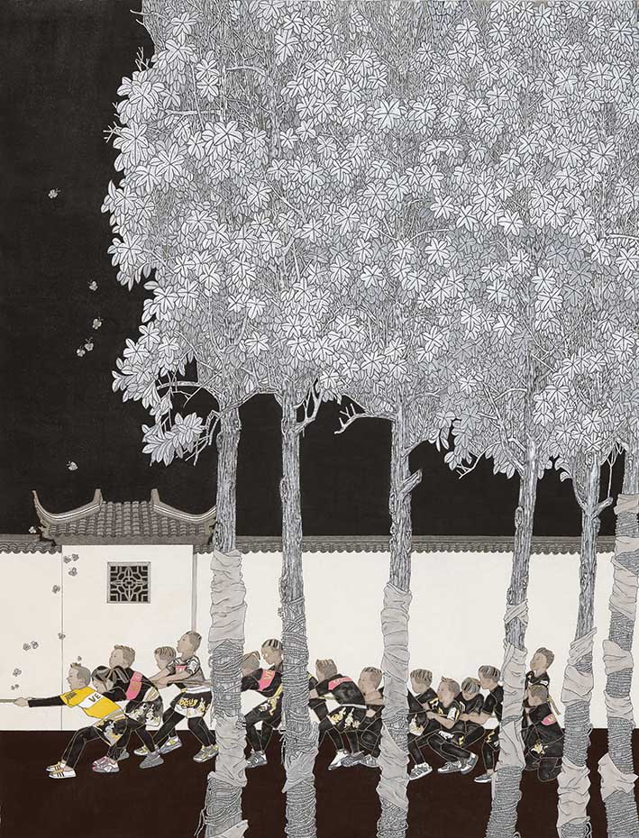 4、2021年《风骨少年》入选抱石风骨首届中国画双年展;