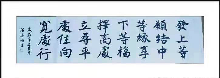 温奇昭,自幼酷爱书法绘画艺术,入门初学颜,赵,智永名帖,又涉取隶书,魏碑,后兼学二王,米芾等名家书法名帖,学书以来笔耕不辍,在学习碑帖的过程中将书法理论与传統文化进行结合,揣摩领悟书法的用笔要领,在各书法展览参展中均有获奖。