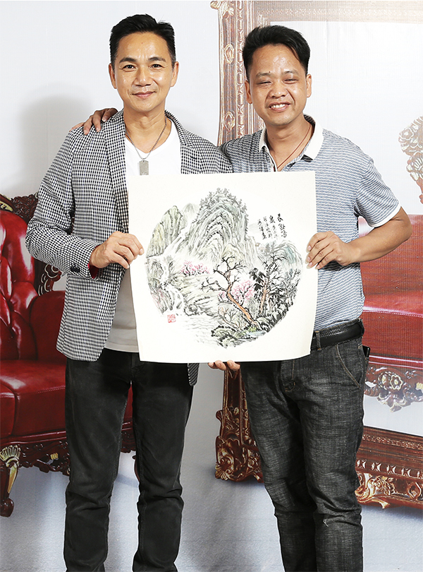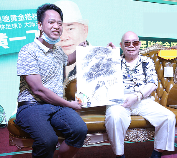 周星驰金牌搭档黄一飞(右)先生收藏画家郑海伦字画现场