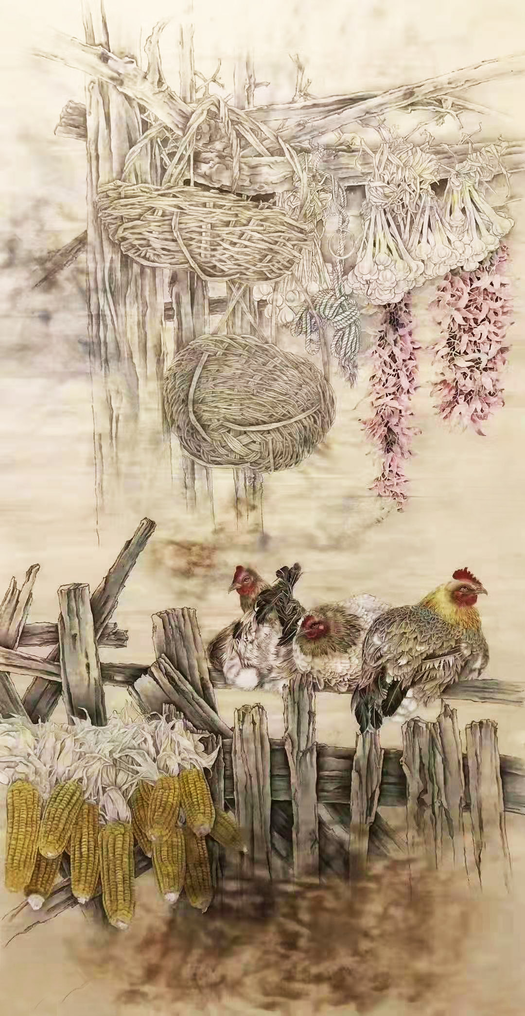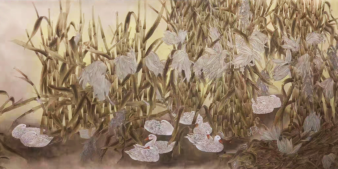 画家徐柏艳的花鸟画题材比较稳定,她的作品形态天然地富有超越时代和现实生活的美感, 凝集着画家的心境和情怀。从画面来看, 可以说是自然的一个定格, 更主要的是抒发作者的思想、对自然的认知, 在历史变革的边缘维系其自身延绵不绝的生命力。 其精深的美学内涵、风雅的意蕴、玩赏的价值, 以及高度成熟的人文积淀,与现代文明和和谐环境渐相溶合,使人们在安定富庶的生活空 间中,慢慢读懂画家的心语。