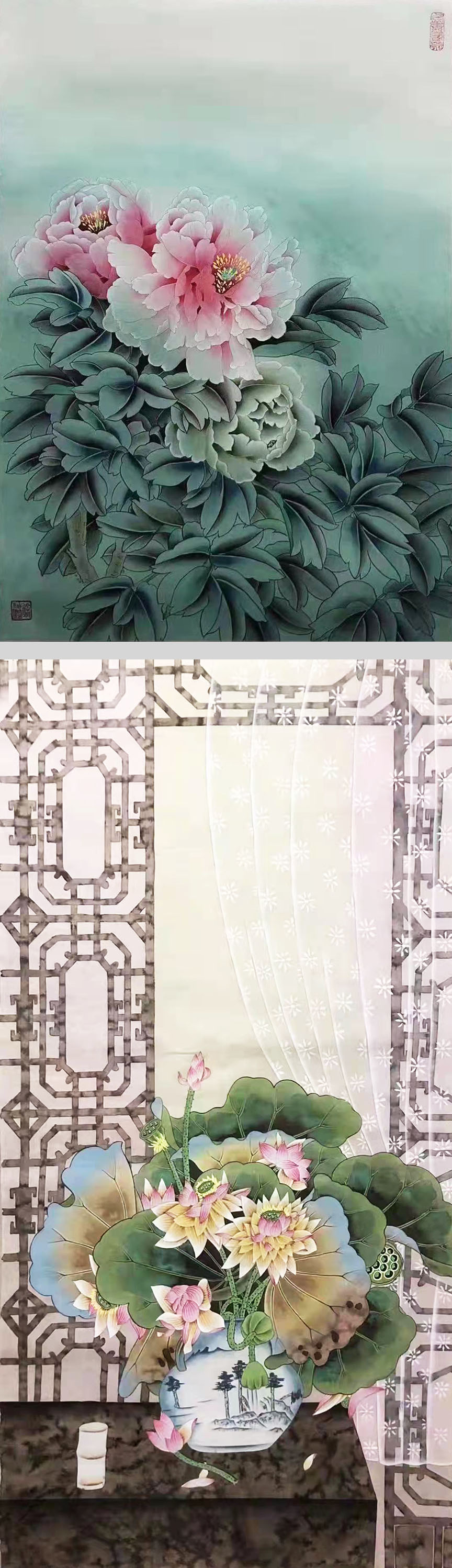 徐柏艳的工笔画大多以表现当代生活题材为主,近年来创作出很多精品佳作,工笔作品严谨细腻,格调优雅脱俗,其写意作品用笔恣肆、设色清新,尽显典雅端庄大气、洒脱自然,实为不俗。