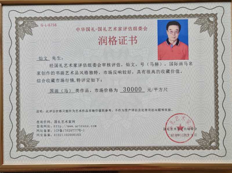 国际千马英姿,万马奔腾画马名家,徐悲鸿内传弟子,荣获,国家一级美术师,晋级国家高级美术师,国礼艺术家,2020最具投资价值艺术家,国家画马艺术大师称号。