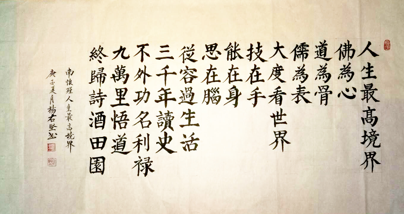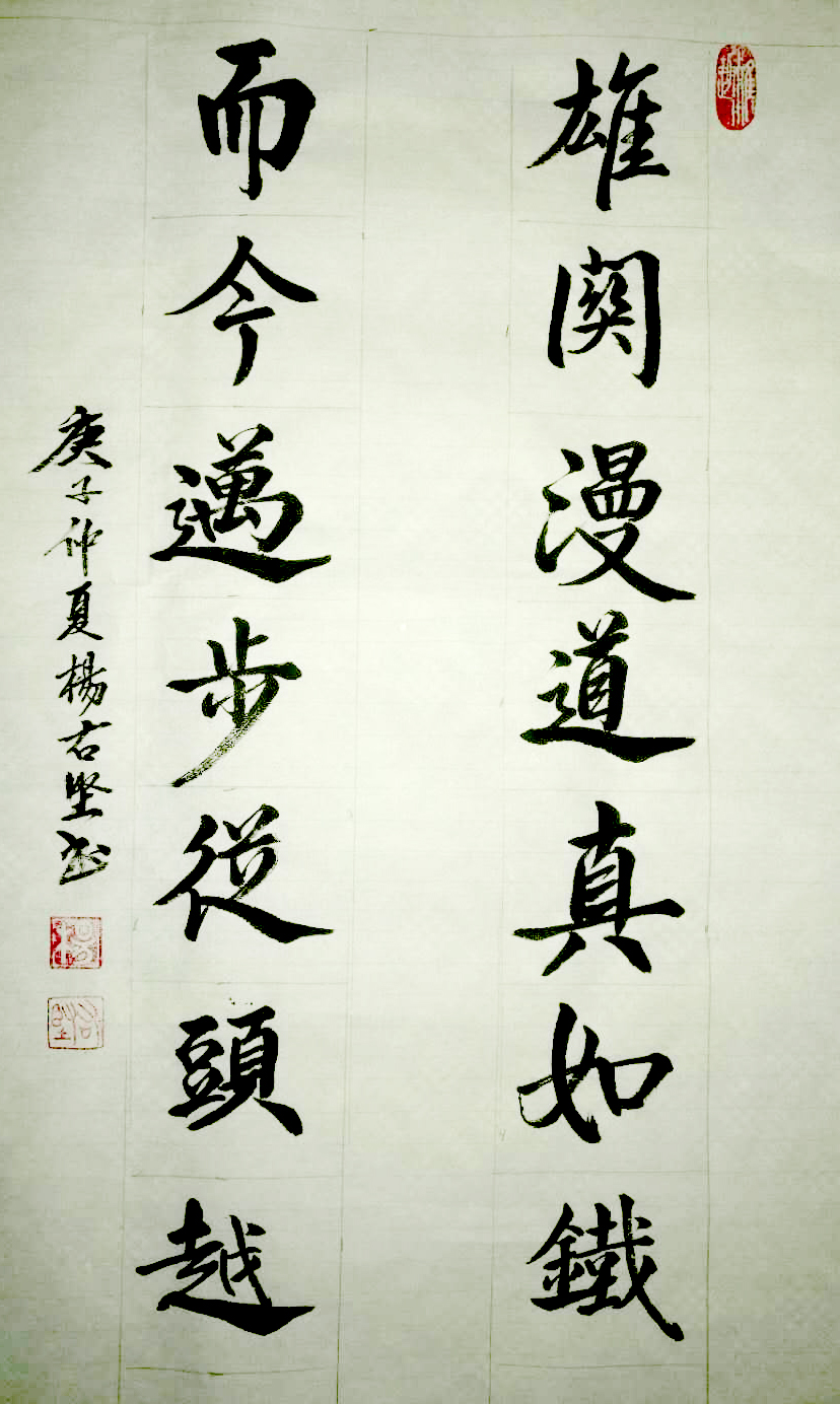 杨右坚,男,1963年生人,祖籍,中国广东省汕头市潮阳,现为广东省楹联学会会员,汕头市楹联学会发起人、理事、办公室副主任,汕头市书画院艺术家。几十年如一日辛勤研练,在艺术的道路上孜孜不倦的探索取得了可喜成绩,多次参与全国省市书法交流展览笔会,作品入选迎接香港回归全国中青年书画展,并多次获得全国书法作品优秀奖,今年又在支援武汉,抗疫行动为武汉加油书画作品在网络展中展出。