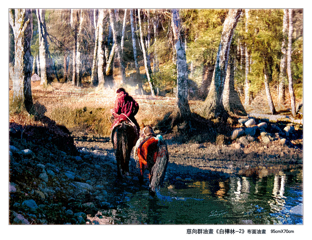 慈向群油画(白桦林2)
