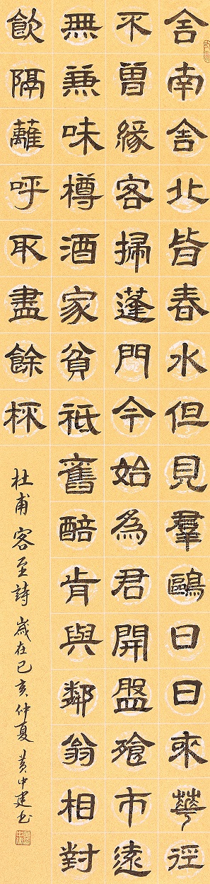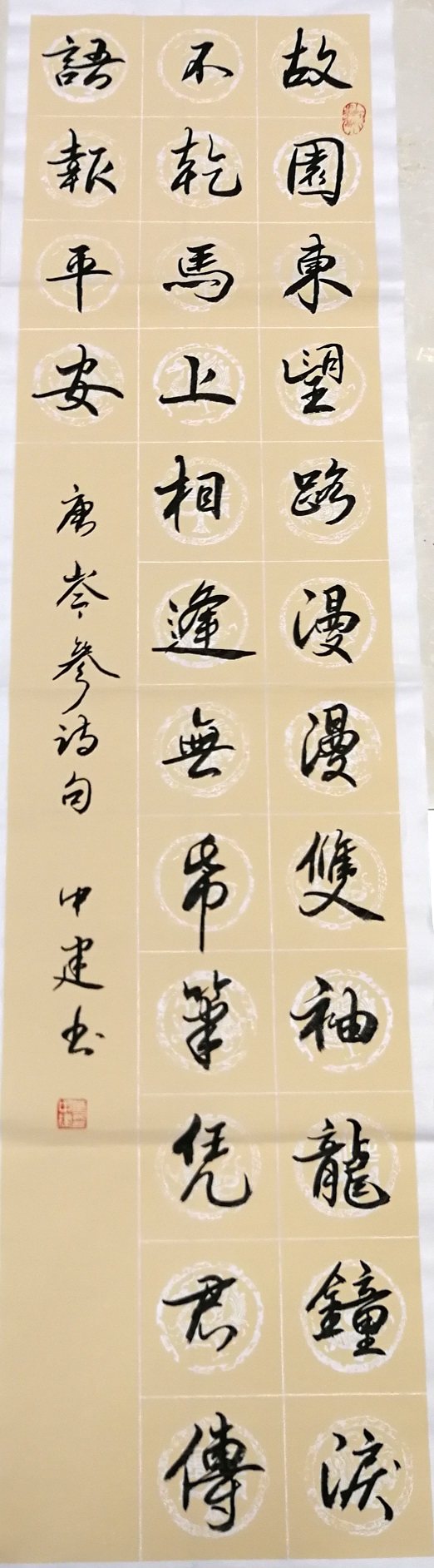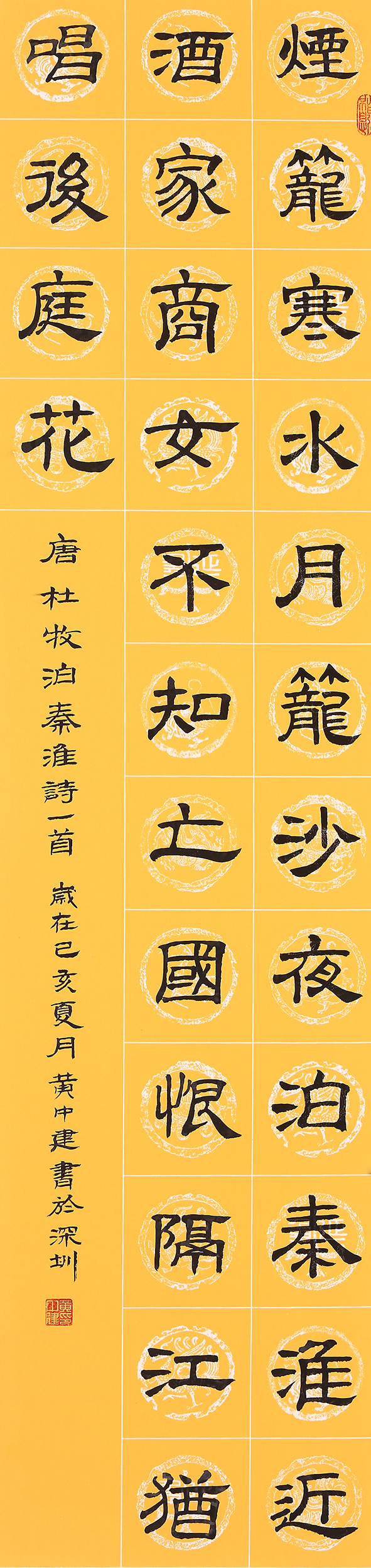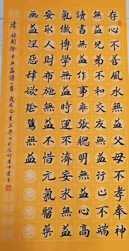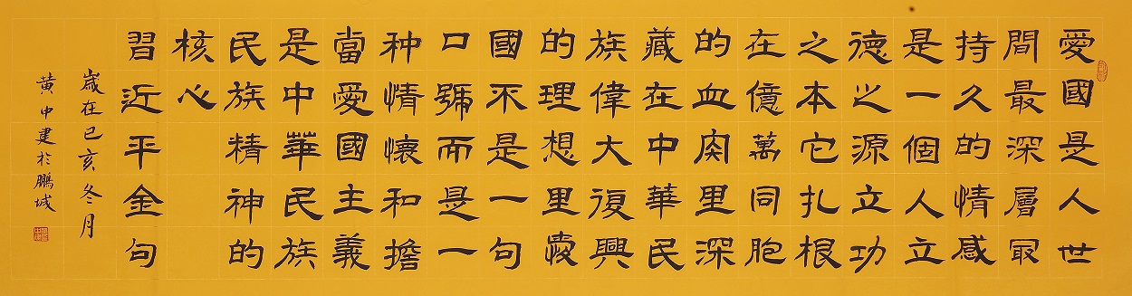 黄中建,中国楹联学会会员,深圳市平湖书画协会副会长兼秘书长,深圳市龙岗区书法家协会会员,深圳市阳江商会创会秘书长,厦门聚贤书画院院士,中国佛教书画学院院士,高级职称书法家。自幼受“父亲黄伟”的教育和熏陶。父亲是“解放初期全国劳动模范,曾受国家领导人, 朱德,刘少奇,陶铸.等的亲切接见。从小喜爱中国传统文化,勤奋好学,长期研习黄庭坚碑帖,勤耕不辍,研习二王、张迁碑、史晨碑、魏碑。并师从田英章,徐志存老师。逐渐形成个人书法风格。近年来,多次受邀在全国展出书法作品,并受到广泛好评和爱好者收藏。