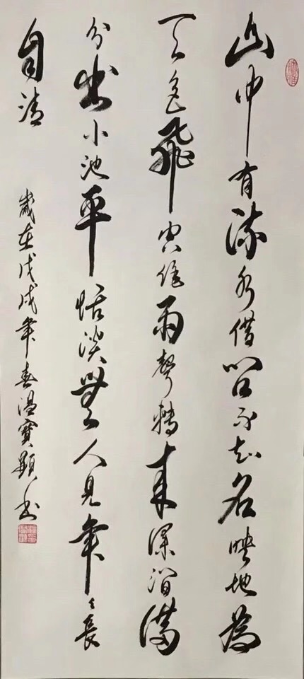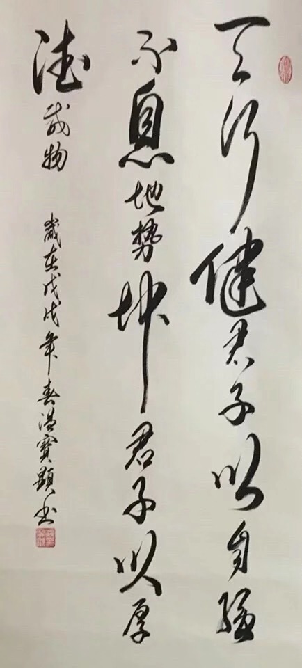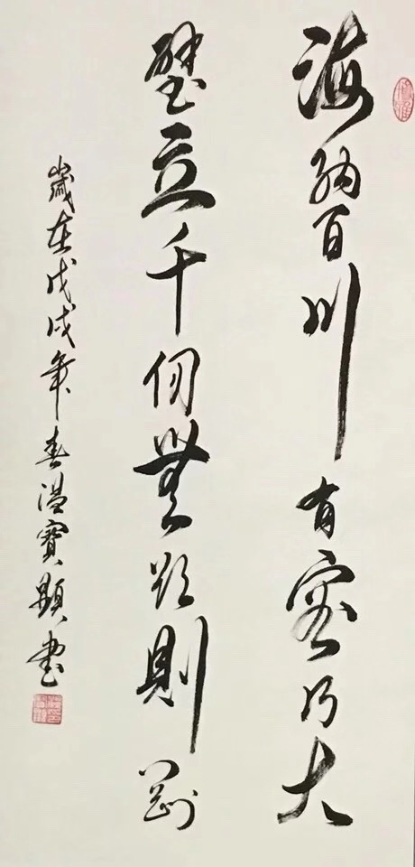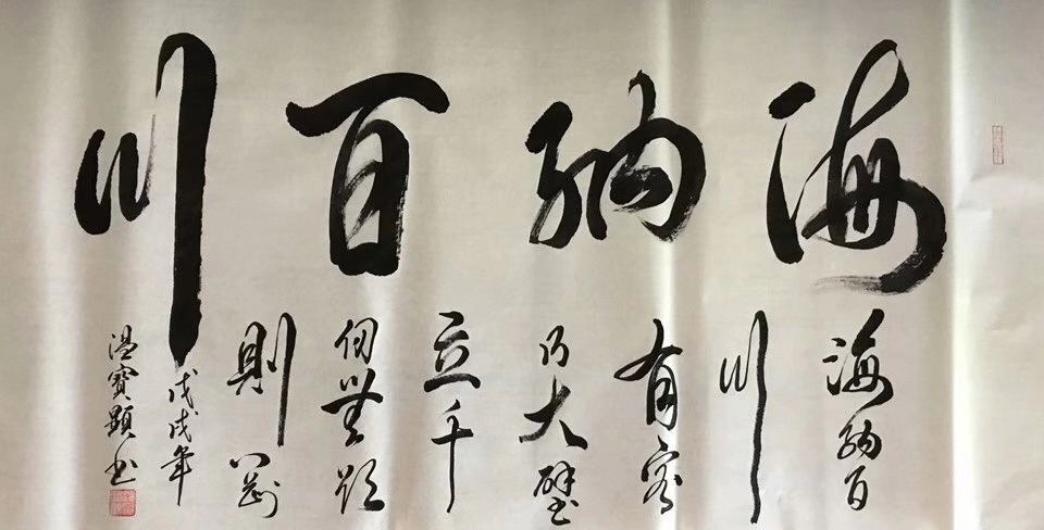 宝剑锋从磨砺出,梅花香自苦寒来。宝显先生,渐渐在自我否定、自我学习中不断地进步、不断地向前,并在“艺海”中享受着快乐的人生……温宝显老师的书法,以历代书法艺术为源头,形成了一种既具有坚实的功底又彰显了自家特点的书写风格,字里行间透着拙与雅,既取法于历代书法大家作品的精髓,又不拘泥于书法大家的作品风格。通过笔画、结构、章法的多变,强化书法的艺术之美,并且突出了传统与创新、刚与柔、虚与实、快与慢、浓与淡、粗与细、轻与重、大与小、正与斜、疏与密、连与断、拙与巧、霸气与秀气等多种变化,笔墨贵乎浓纤互参、血脉相连、筋骨老健、风神洒脱、挥运自如有节律,可谓笔力雄健、华丽、腴润,使书法艺术进入更高的境界。