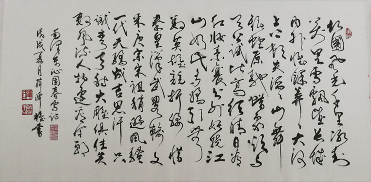 体会:书法是中国独有的古老传统文化艺术,它伴随着中华文明的进步而发展。因此,国人有责任和义务传承和发扬祖国的传统文化艺术。苦练书法,是我的精神寄托,是我学习和生活中的重要组成部份,也是我人生的最大追求和必须深造的愿望。当我挥笔时,感到精神爽朗,浑身气血通畅,乐趣无穷。因此,我所获书法的殊荣,都是对我深造书法艺术的一种鞭策和鼓励,我要为传承和发扬祖国的书法传统艺术而继续努力!为祖国争光!