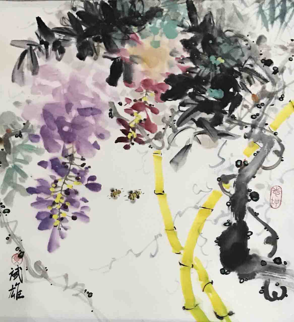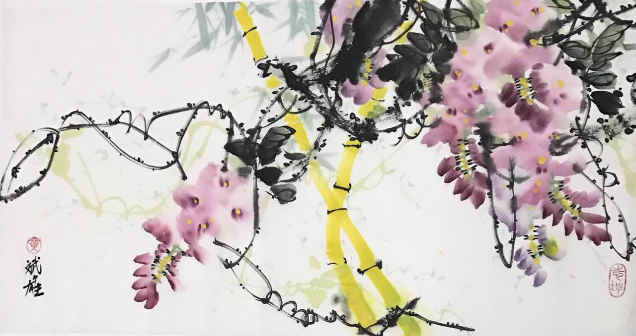 先后加入广州盆景协会、澳门美术协会、澳门文尝协会、澳门莲艺文化协会。在商海浮沉了三十三载后重踏丹青路、涉及山水、花鸟、人物、抽象等探討及創用手指畫梅花,葡㮛子技法。为完善“黄斌雄幻彩笔”和“黄斌雄二维艺术工作台”这两项研发,使命感驱动下更加投入创作。