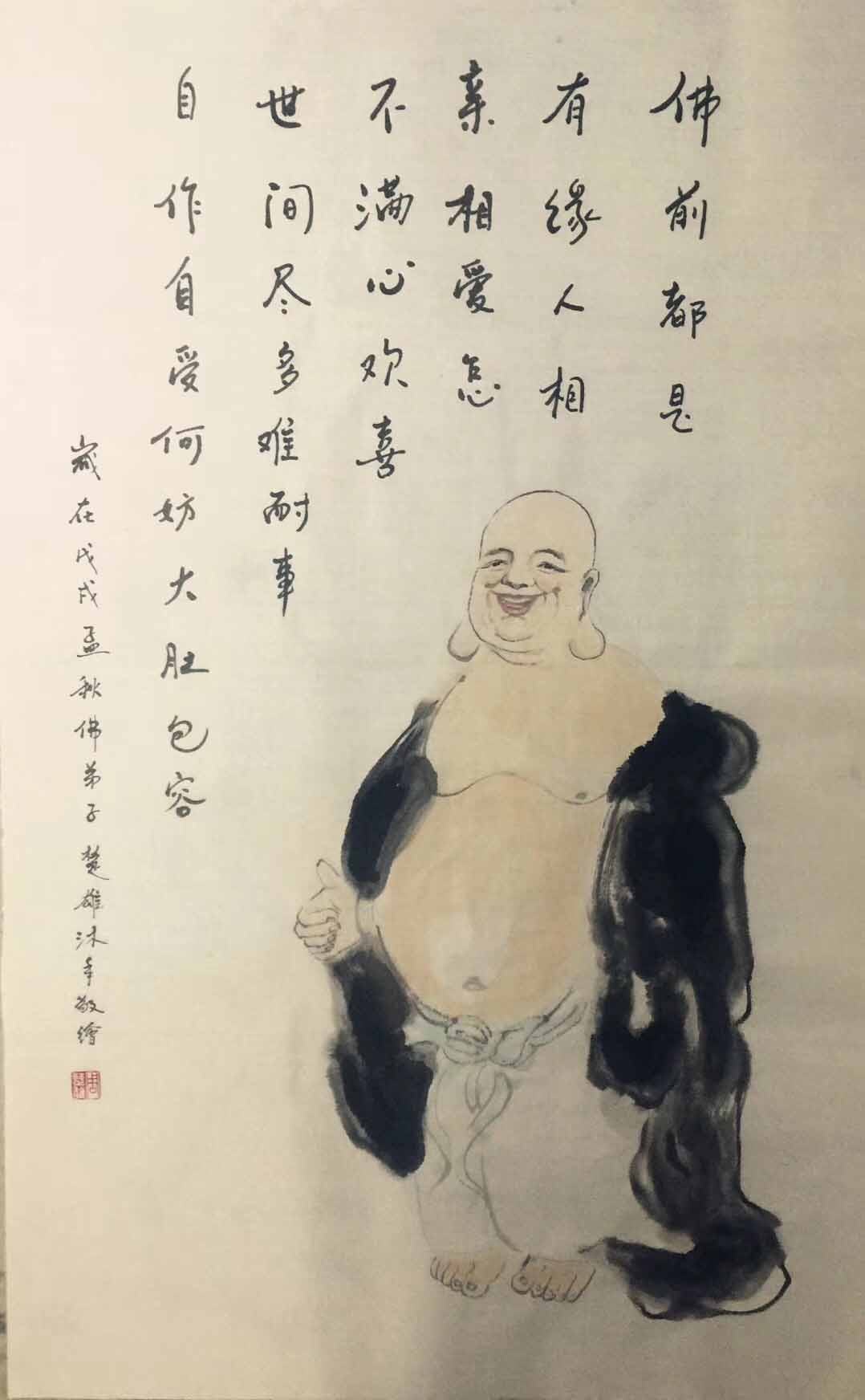 周楚雄,字一泉,号墨禅居士,2001年毕业于黄冈师范学院美术系 ,自幼酷爱书法 ,绘画 ,中学时代油画作品《春风又绿江南岸》入编《中国书画艺术博览 》大型丛书,国画《灵禽也识风光好》获全国优秀美术作品荣誉称号 ,由于对艺术的执着与追求,二十余年的坚持与用心,笔耕不辍,先后师承国画大师 钟承蒲,晁谷,慧馨居士,曾中山学习国画山水,人物,花鸟,尤其钟爱画弥勒佛 ,在睡梦中经常梦见弥勒佛,从而与佛结下情缘,笑口常开笑天下可笑之人,大肚能容天下难容之事。佛系的作品在深圳美术馆,关山月美术馆参展并获奖,2016年国画作品《佛性童心》在中华文人书画优秀作品展中 荣获金奖被誉为"画禅圣手"现为深圳书画协会会员。