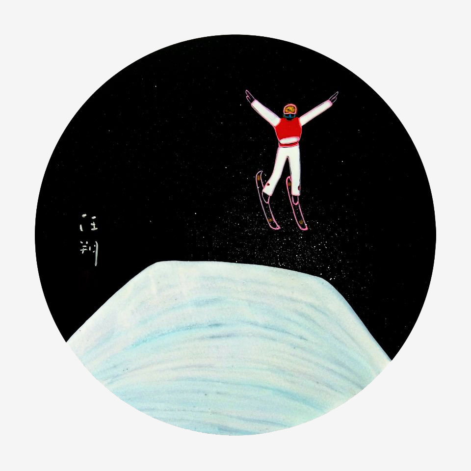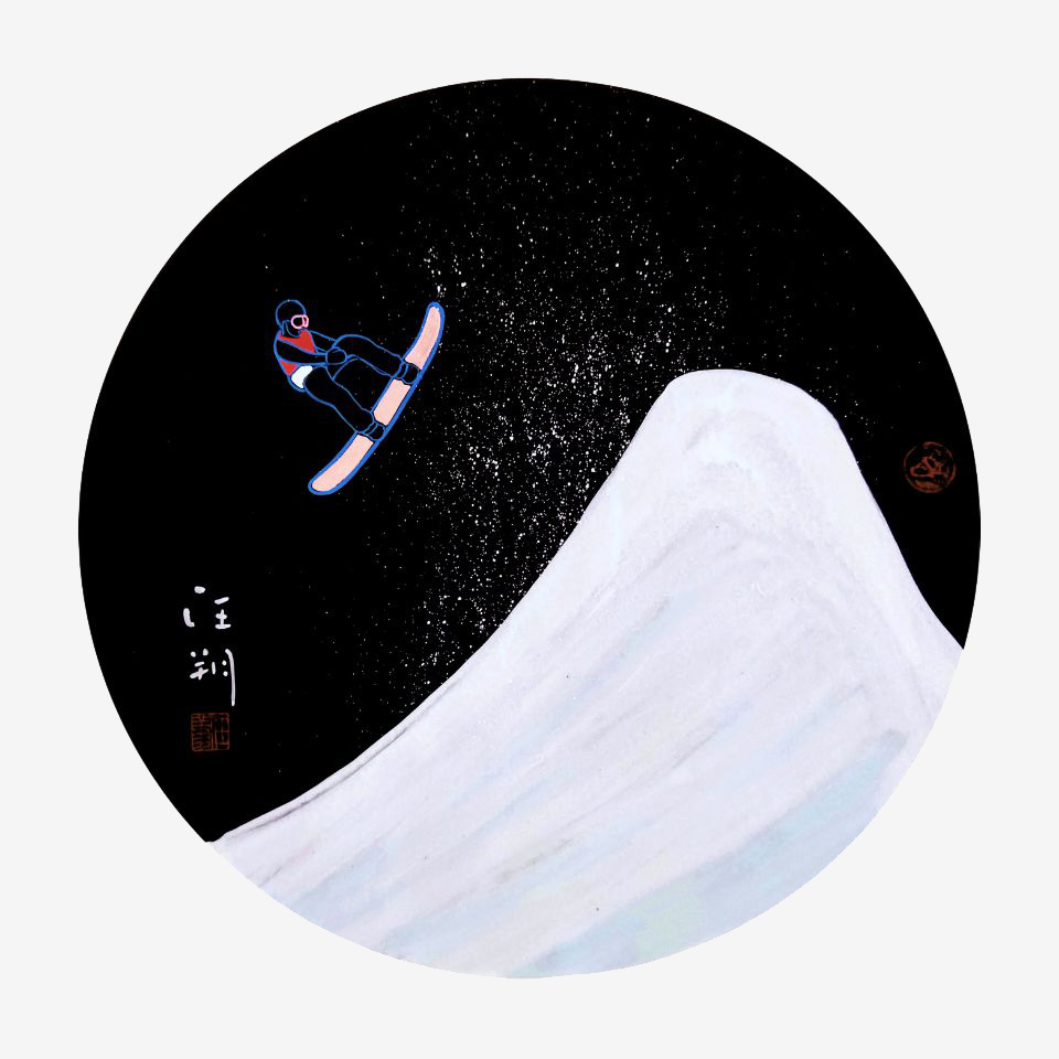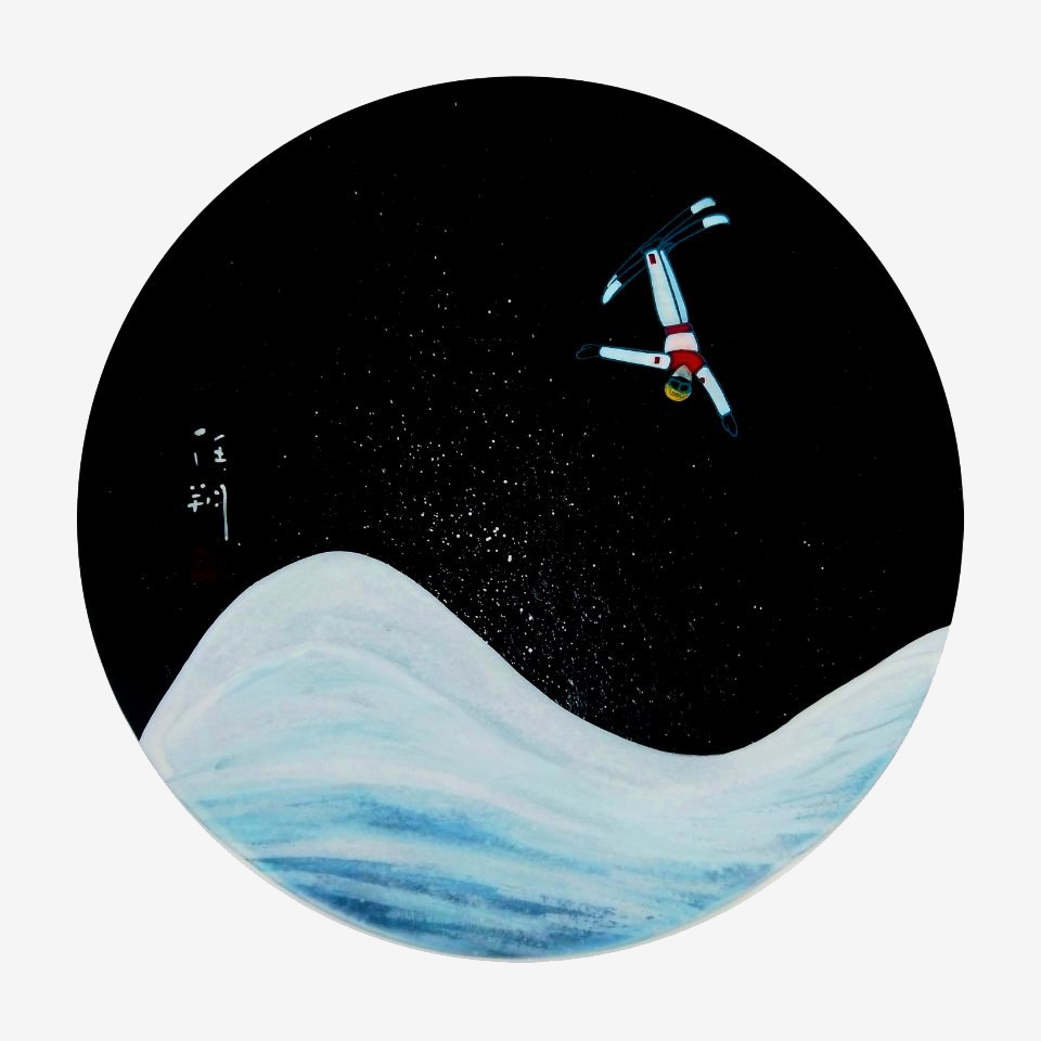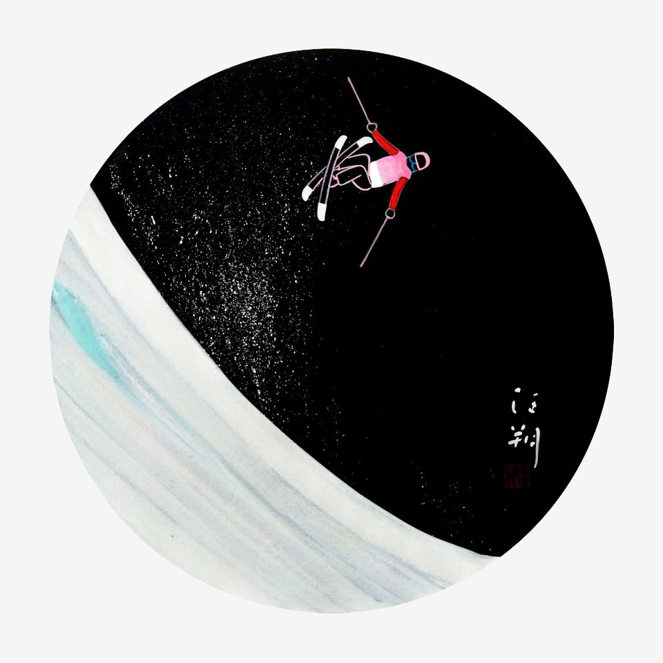 《冬奥健儿》38cmX38cm 岩彩 皮纸