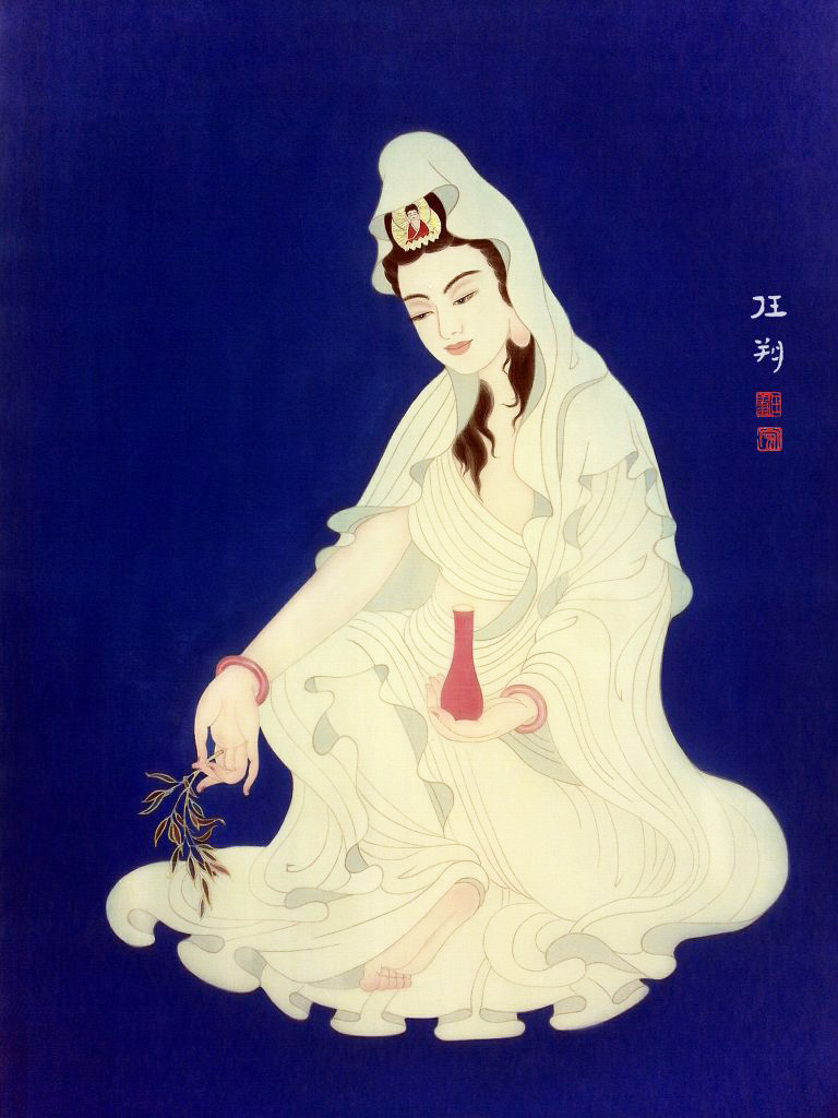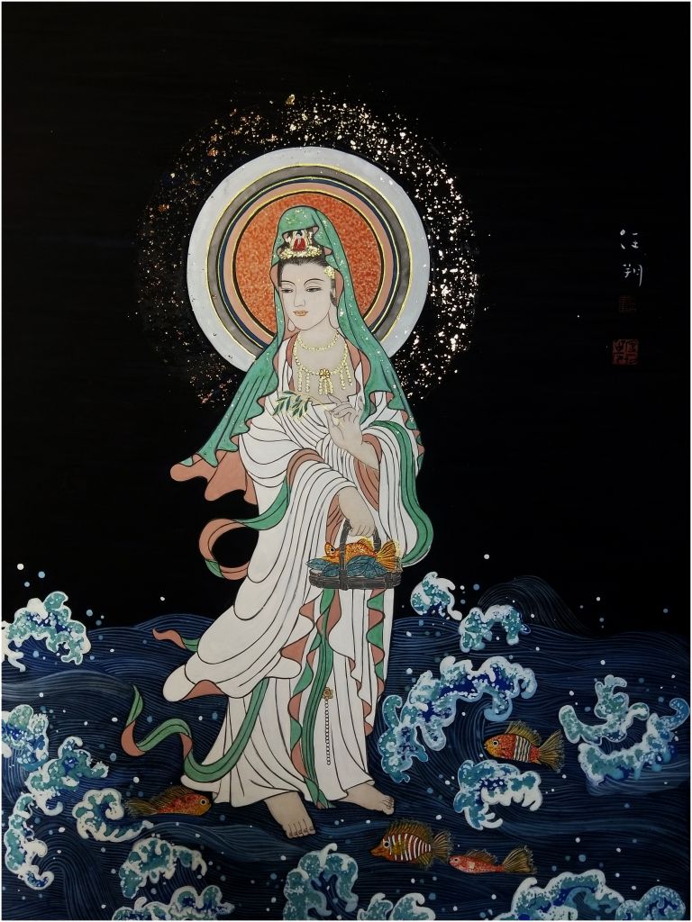 《鱼篮观音》90cmX60cm 岩彩 皮纸