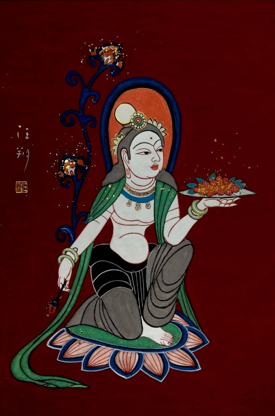 《供养菩萨》64cmX44cm 岩彩 皮纸