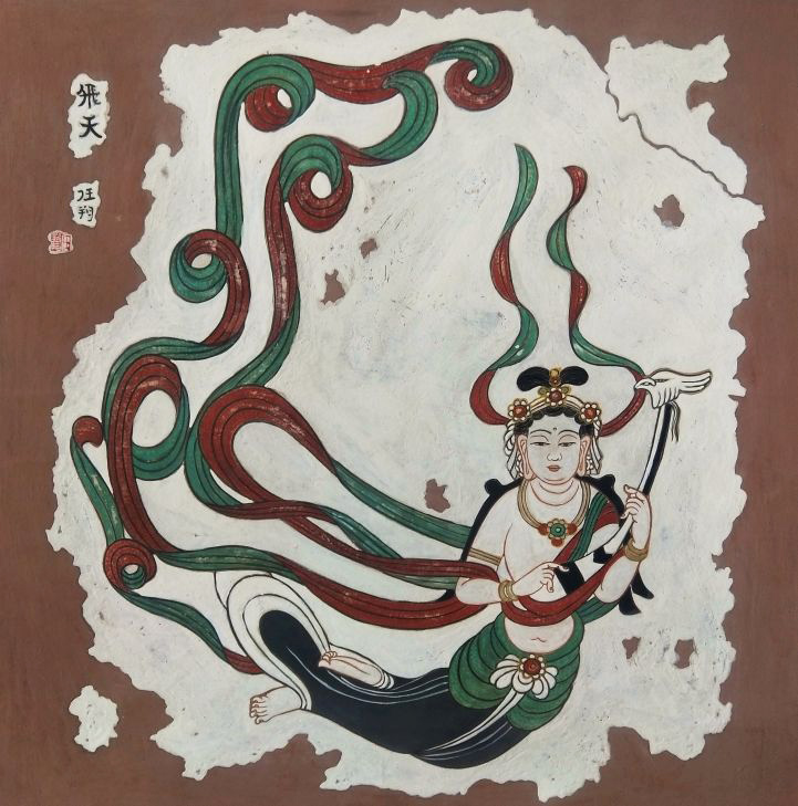 《飞天菩萨》66cmX66cm 壁画 皮纸