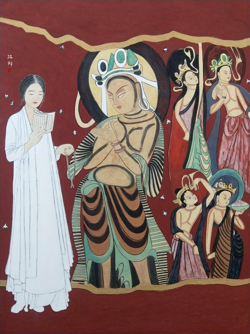 《梦回敦煌》90cmX68cm 壁画 皮纸