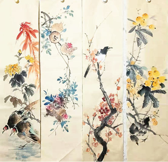 2016年,作品花鸟四条屏在哈尔滨文化馆参展。