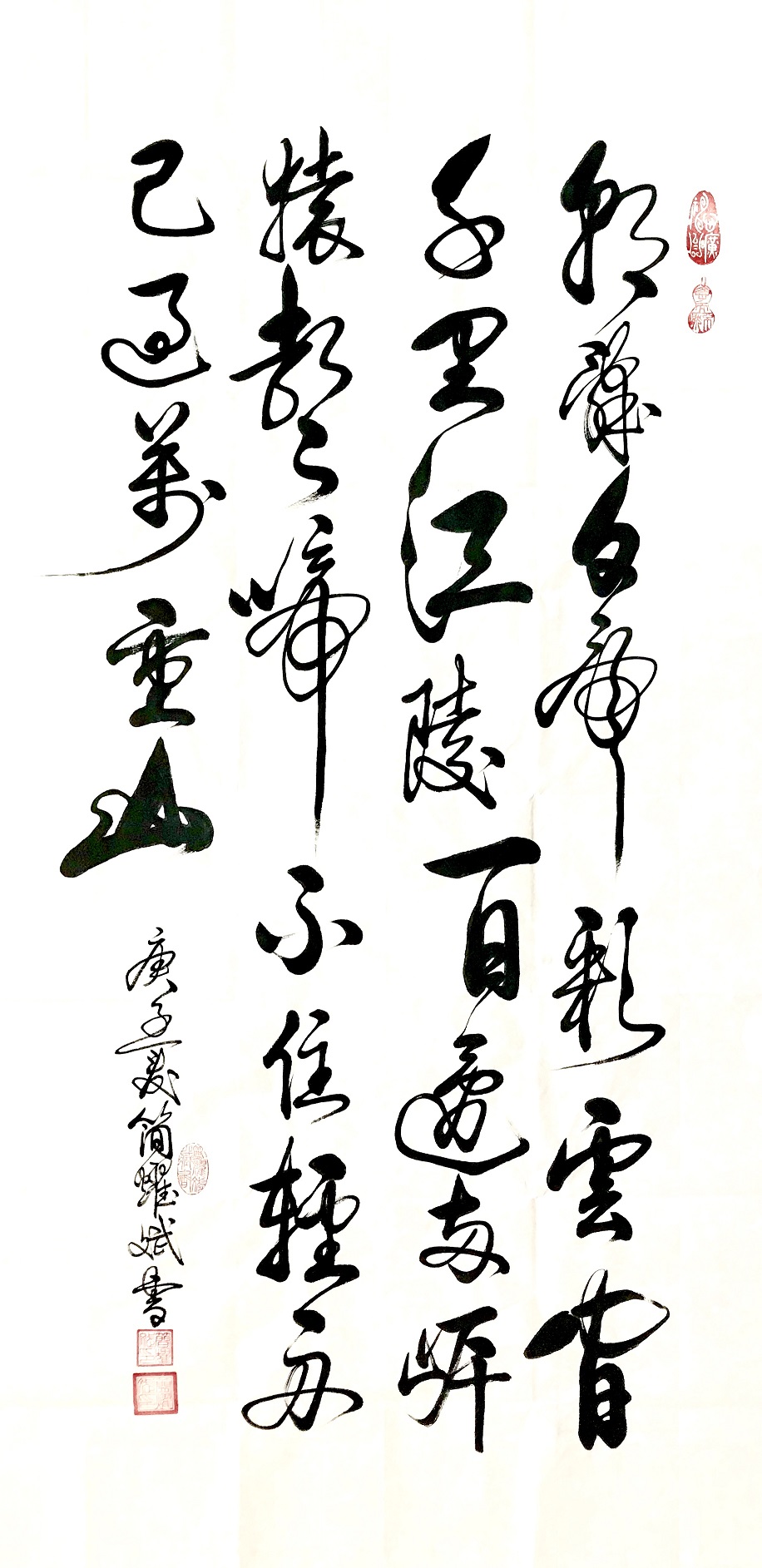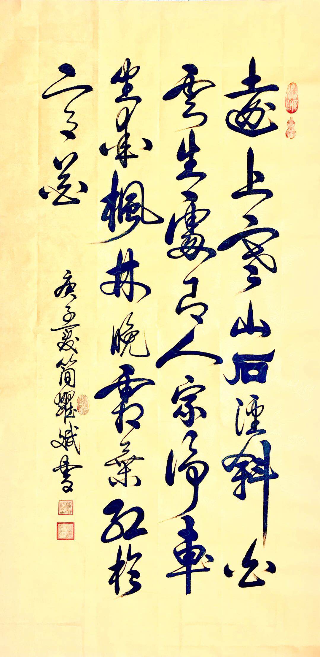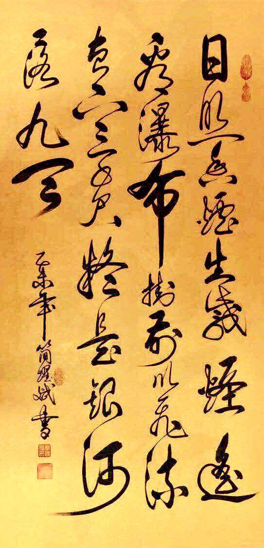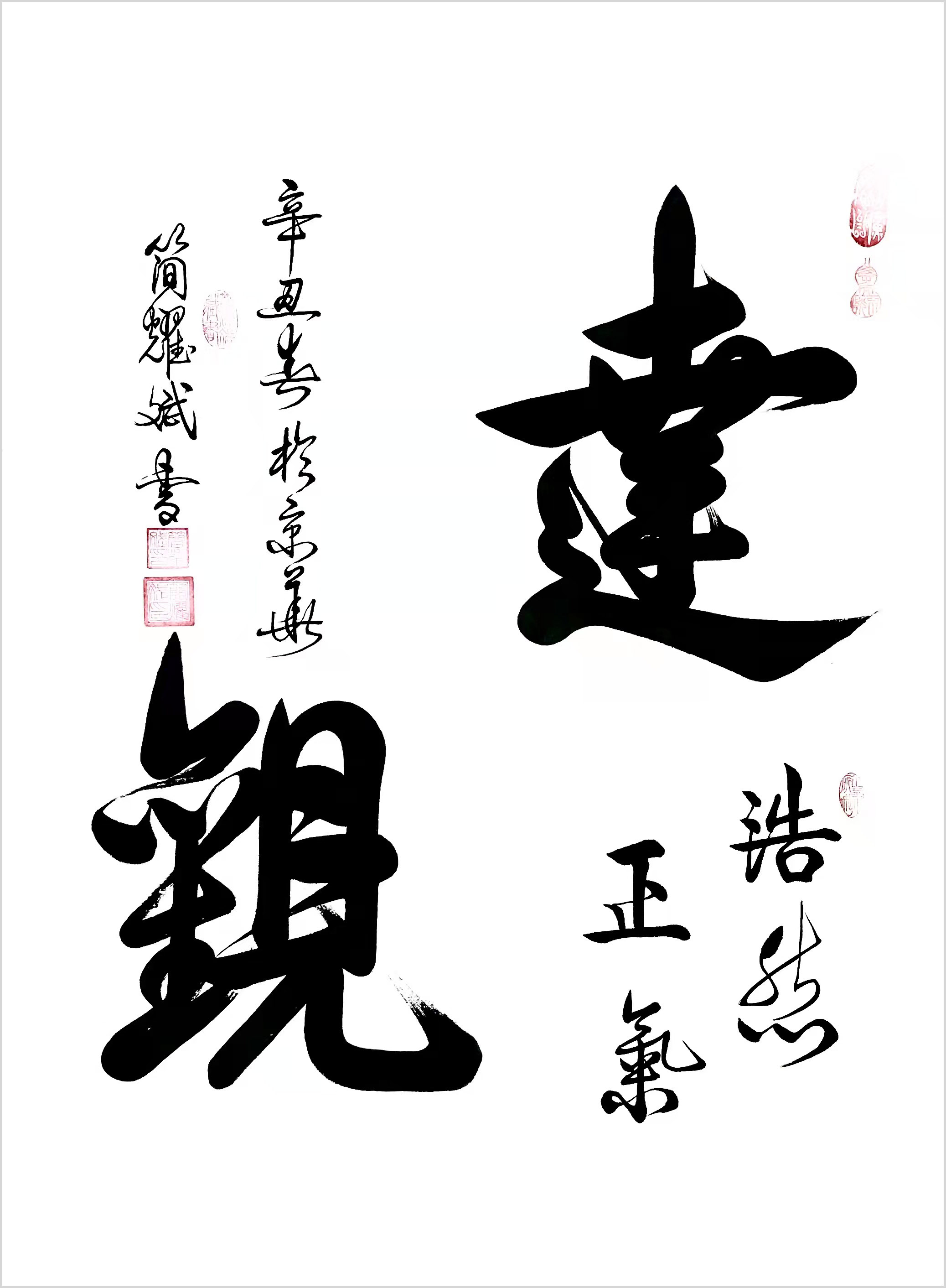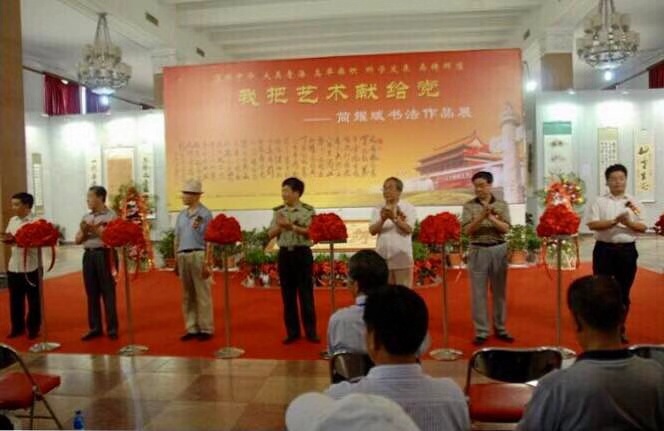 简耀斌自幼酷爱书法,五岁随父边学中医兼习书法艺术,钟情二王,临池不辍,锲而不舍,博采众长,独辟蹊径,自成一体。字型遒劲,豪迈奔放,气势磅礴,秀丽端庄,刚柔并济,收放自如,行云流水,神韵并茂。中科院书法家周昌范赞誉道:“简公不简单,豪气发笔端,超然法度外,别是一重天”。中国书画家协会张副主席美曰“简字一绝”。