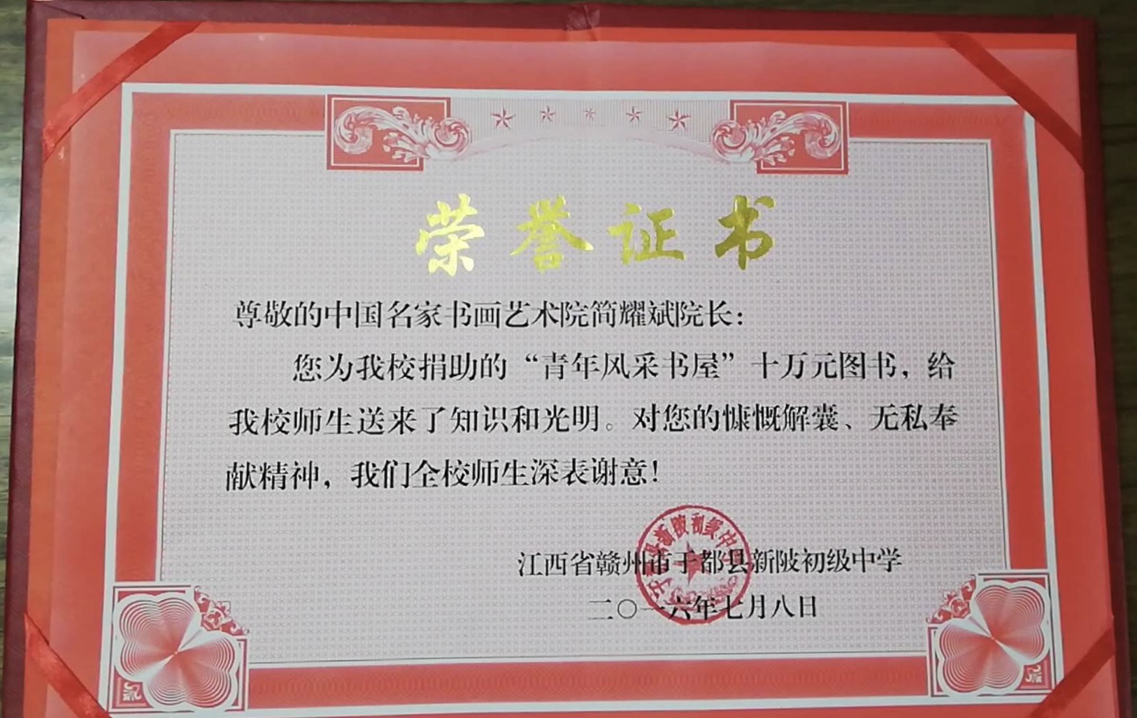 2016年4月为江西省红军长征出发地于都县黄陂中学捐赠了10万元的图书,建立了青年风采书屋,给革命老区的孩子送去了知识和光明。曾荣获“省十五创新立功先进个人”、“ 省十大科技创新人物”、“ 省部级劳动模范”、“全国五一劳动奖状(单位领导)”、“中国十大杰出管理人物”等荣誉。主持、参加省部级科研课题10余项,并获得省级科技成果3项、国家专利1项。公开发表各种论文50余篇、参与编写《国家公务员管理》等大型丛书3部,其中《把握选贤任能十条原则,培养大批跨世纪领导人才》等论文荣获省部级一等奖。其书法作品具有极高的升值空间和收藏价值。